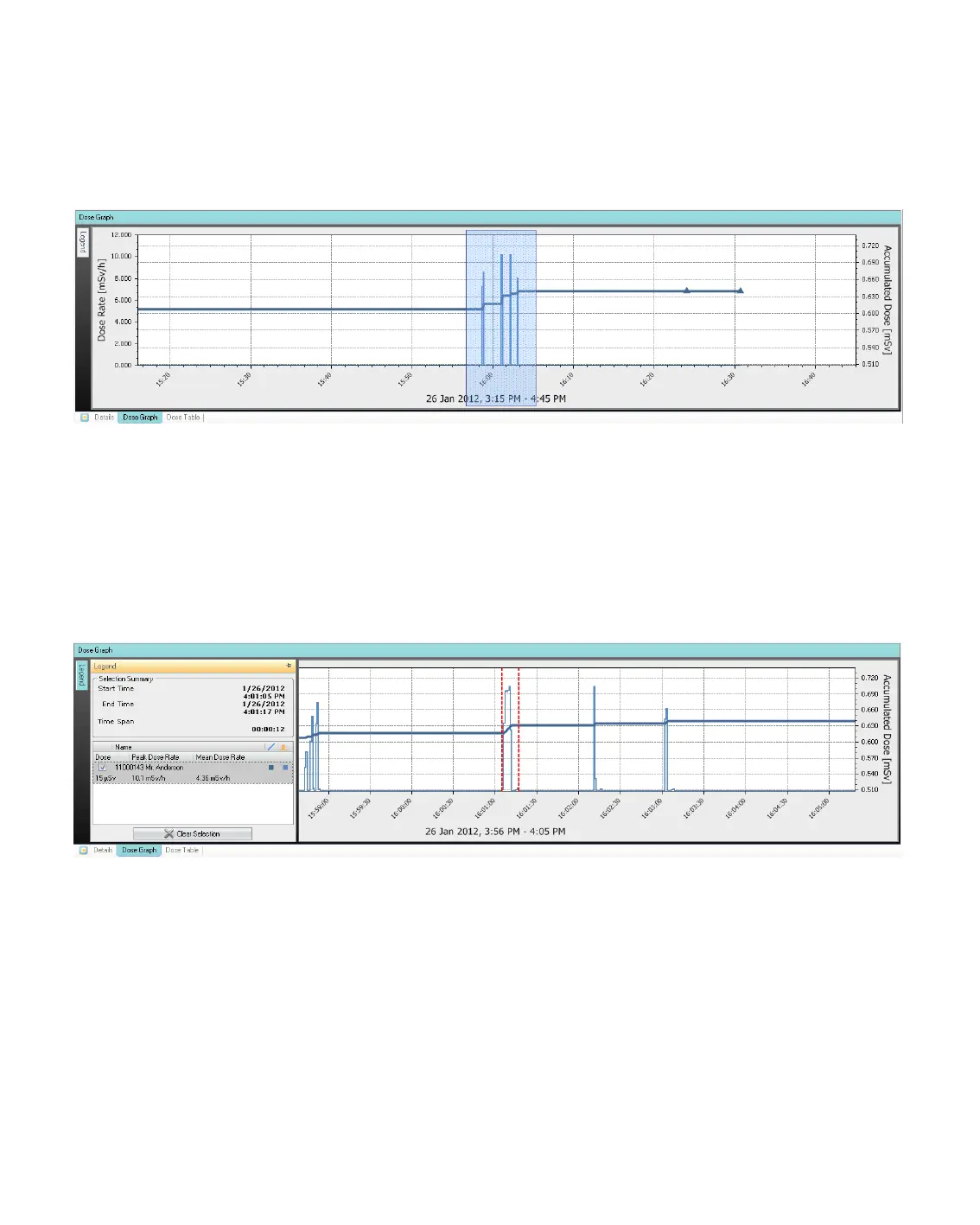 2. Use the tools in the dose navigation toolbar to navigate further in the graph.