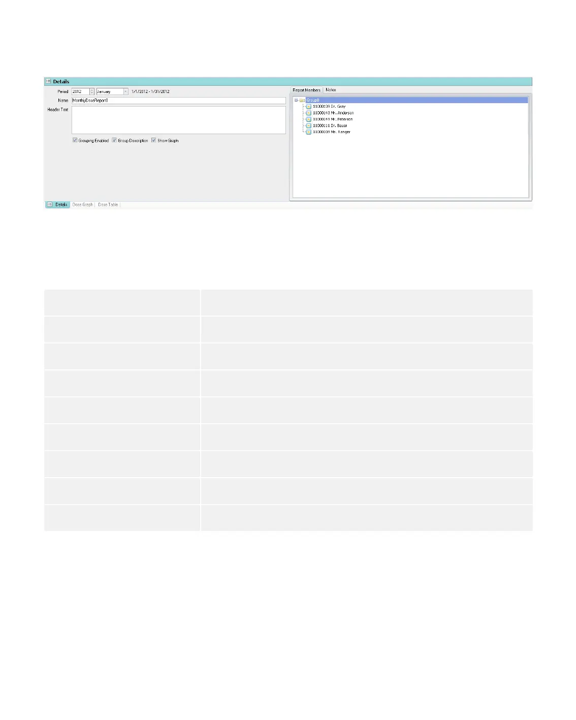 Report members Show the dosimeter(s) and group(s) that are members of the group.
