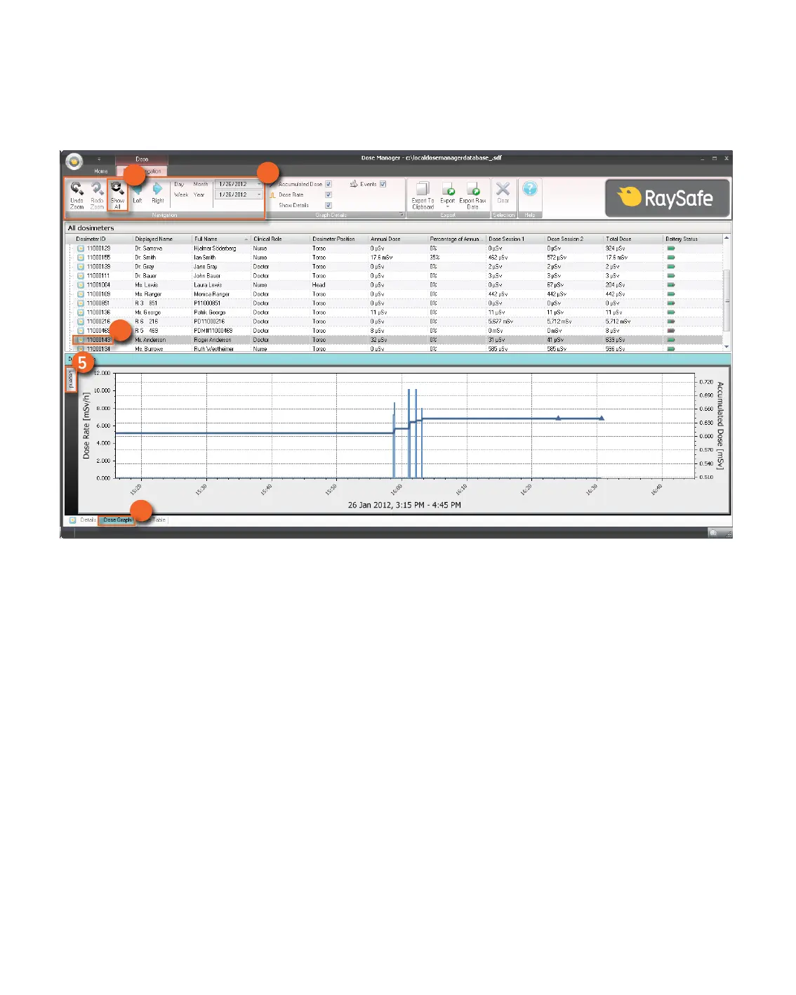 2. Click the tab Dose Graph to see the dose data presented as a graph.