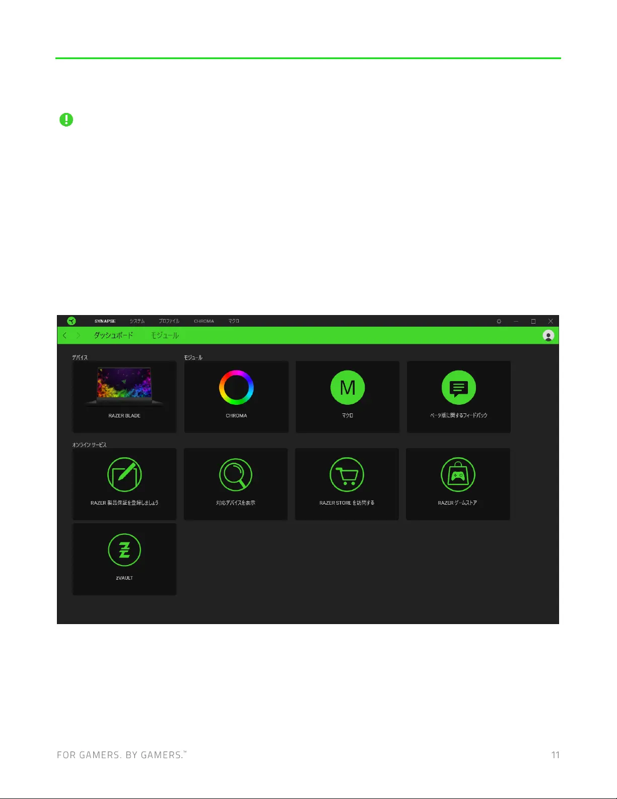 [ダッシュボード] サブタブでは Razer Synapse 3 の概要が表示され、お手元の全ての Razer デバイ