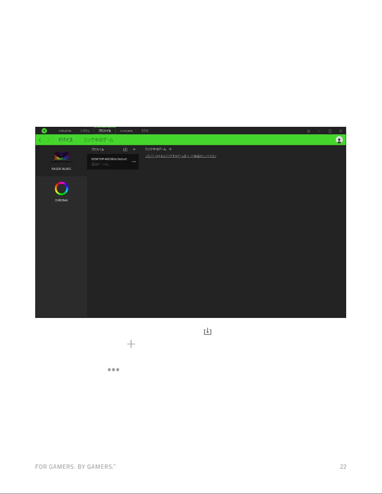 できます。また、追加ボタン ( ) で、選択したデバイス内の新しいプロファイルや、特定のゲームを