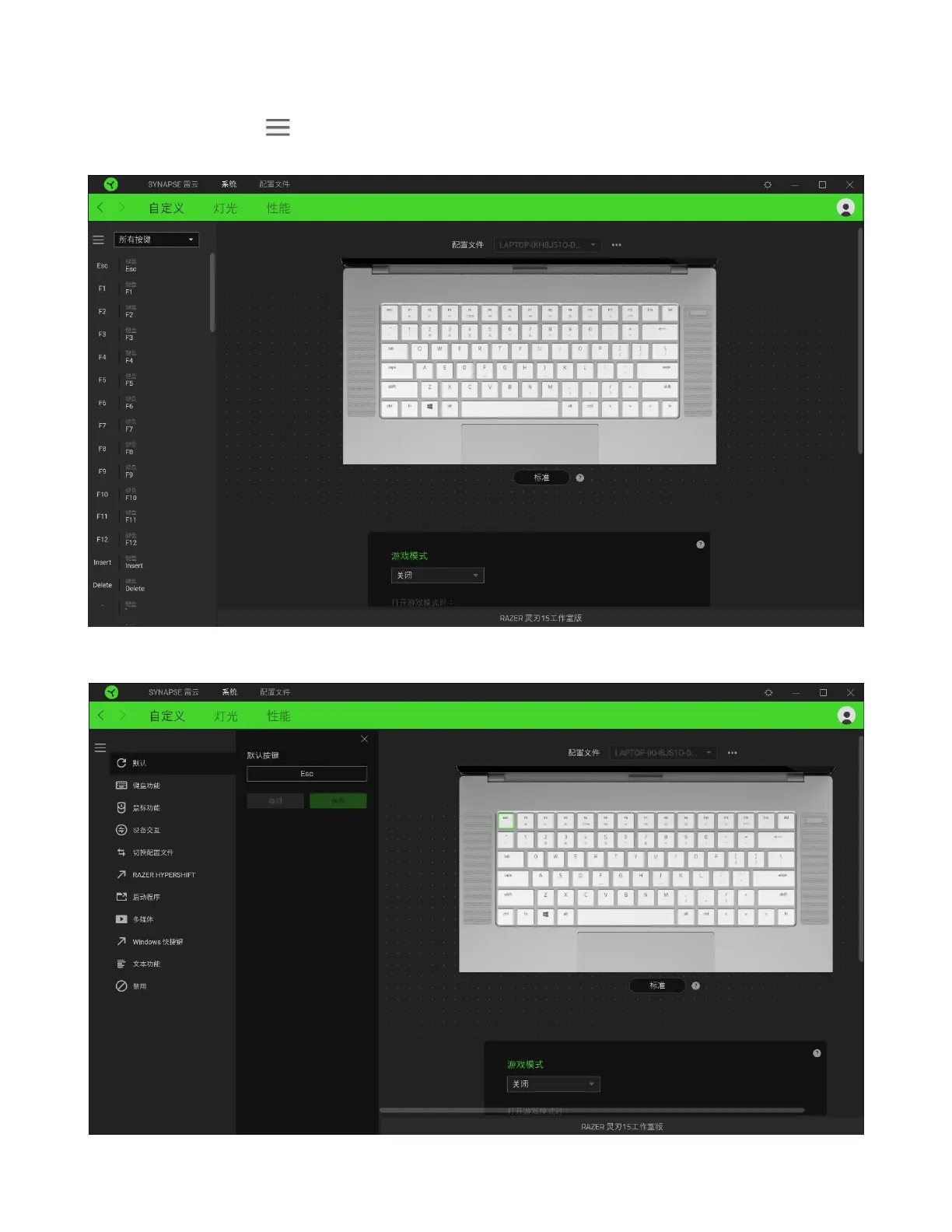 单击“侧栏”按钮 ( ) 将显示 Razer Blade 15 Studio Edition 雷蛇灵刃15工作室版的