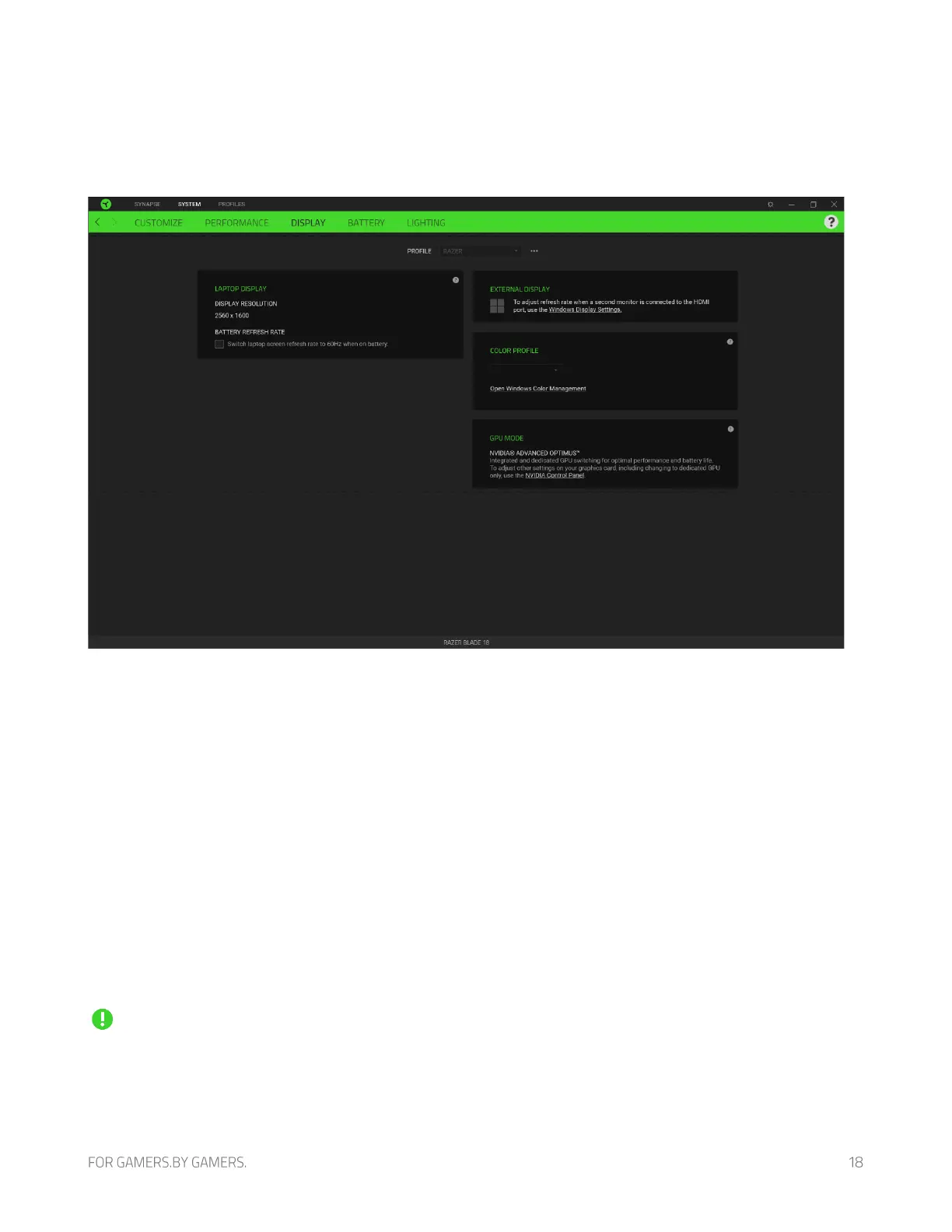 你可以在「燈光」子分頁修改 Razer 裝置的顯示設定,例如解析度、色彩、更新率和 GPU 模