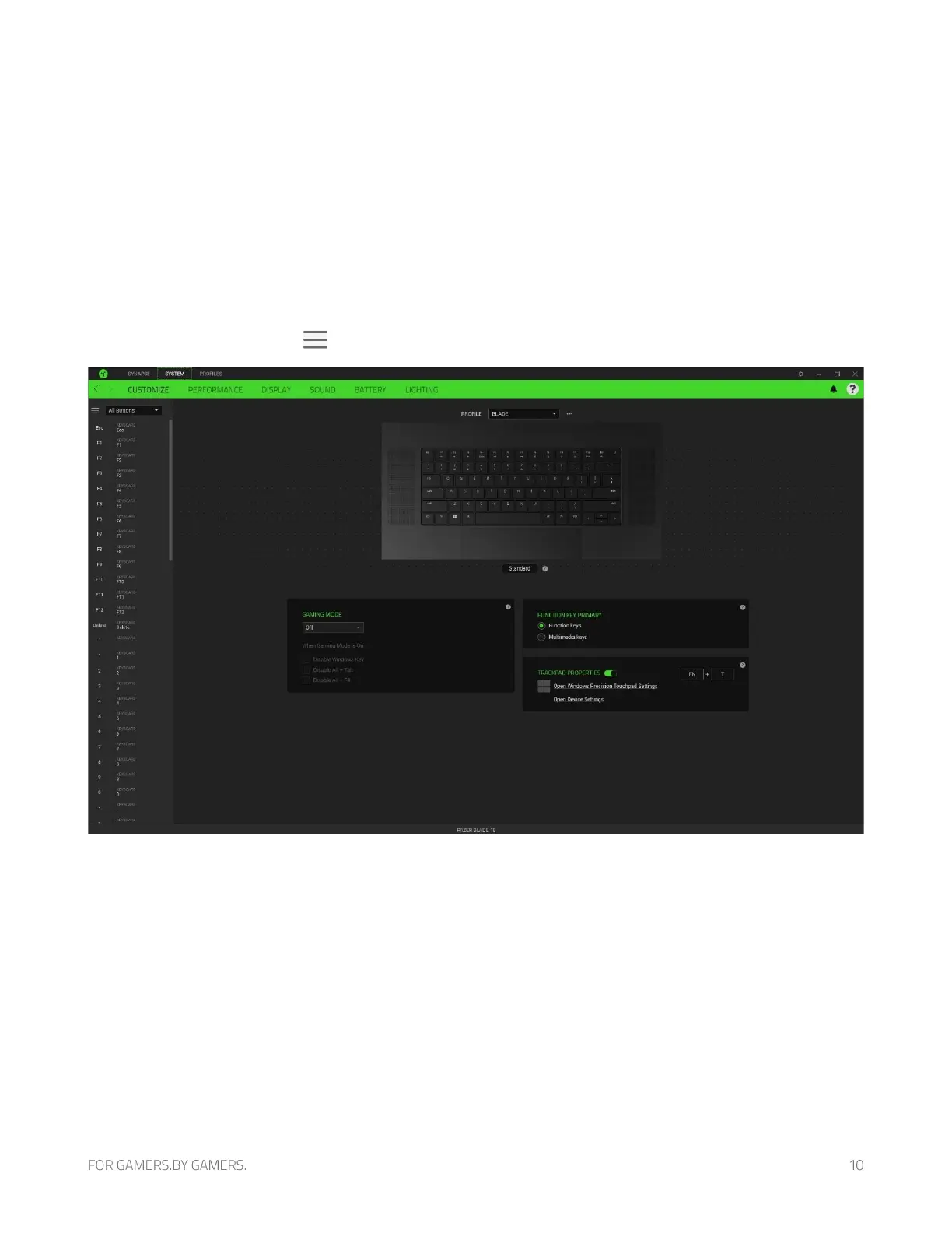 按一下「側邊欄」按鈕 ( ) 即可顯示 Razer Blade 18 的目前所有的按鍵指定。