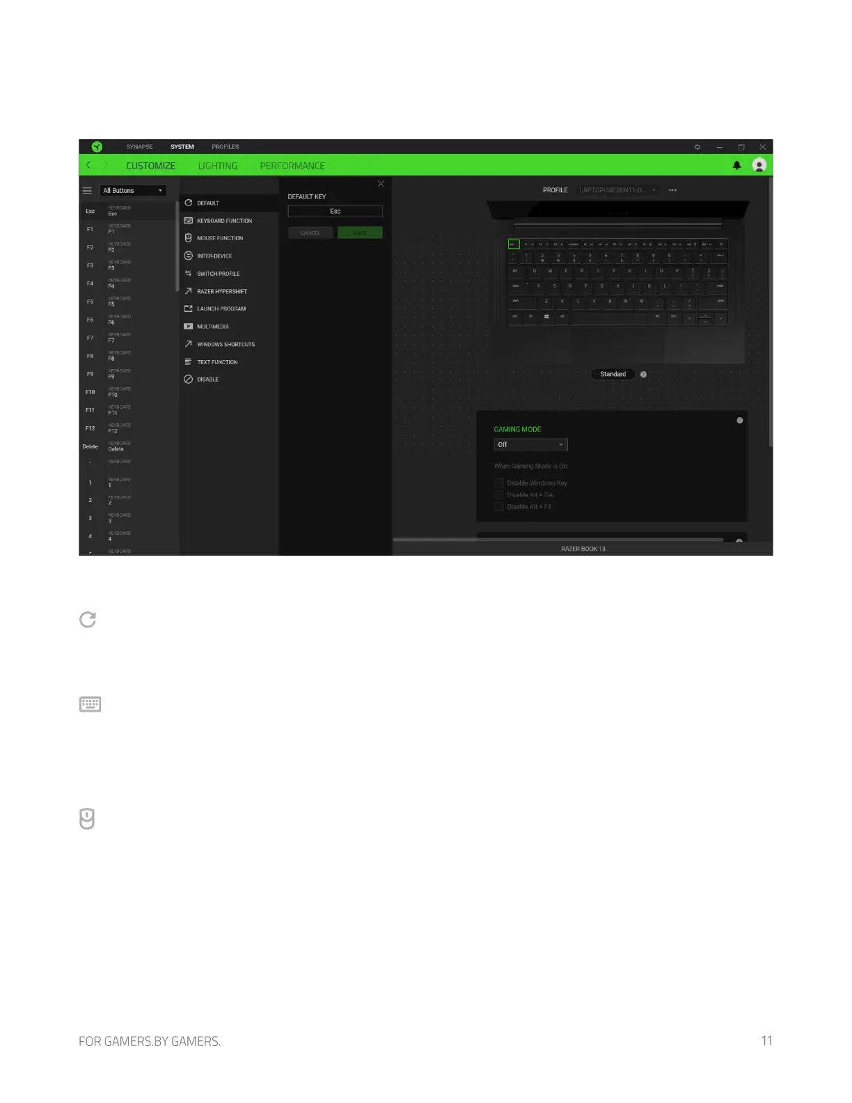 キー割り当てをキーボードの機能に変更するオプションです。またキーを押し込んでいる間はそのキ