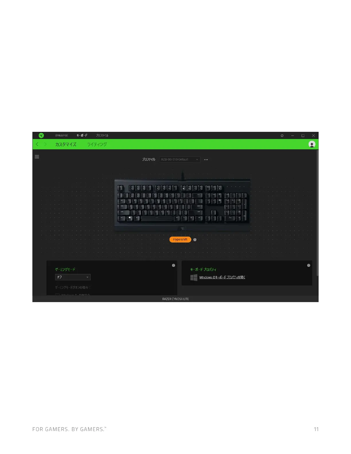 ルト設定の場合、Hypershift キーは Razer Synapse対応キーボードの fn キーに割り当てられますが