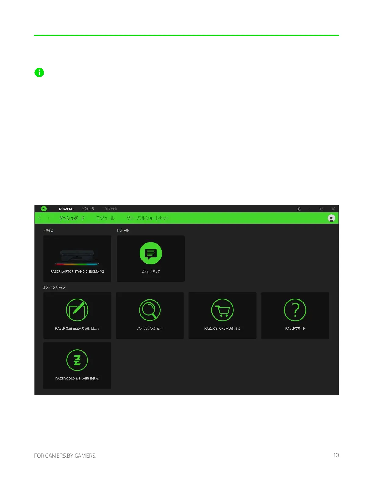 要です。Razer ID アカウントの登録が推奨さ れますが、これは任意 です。示された すべての機能