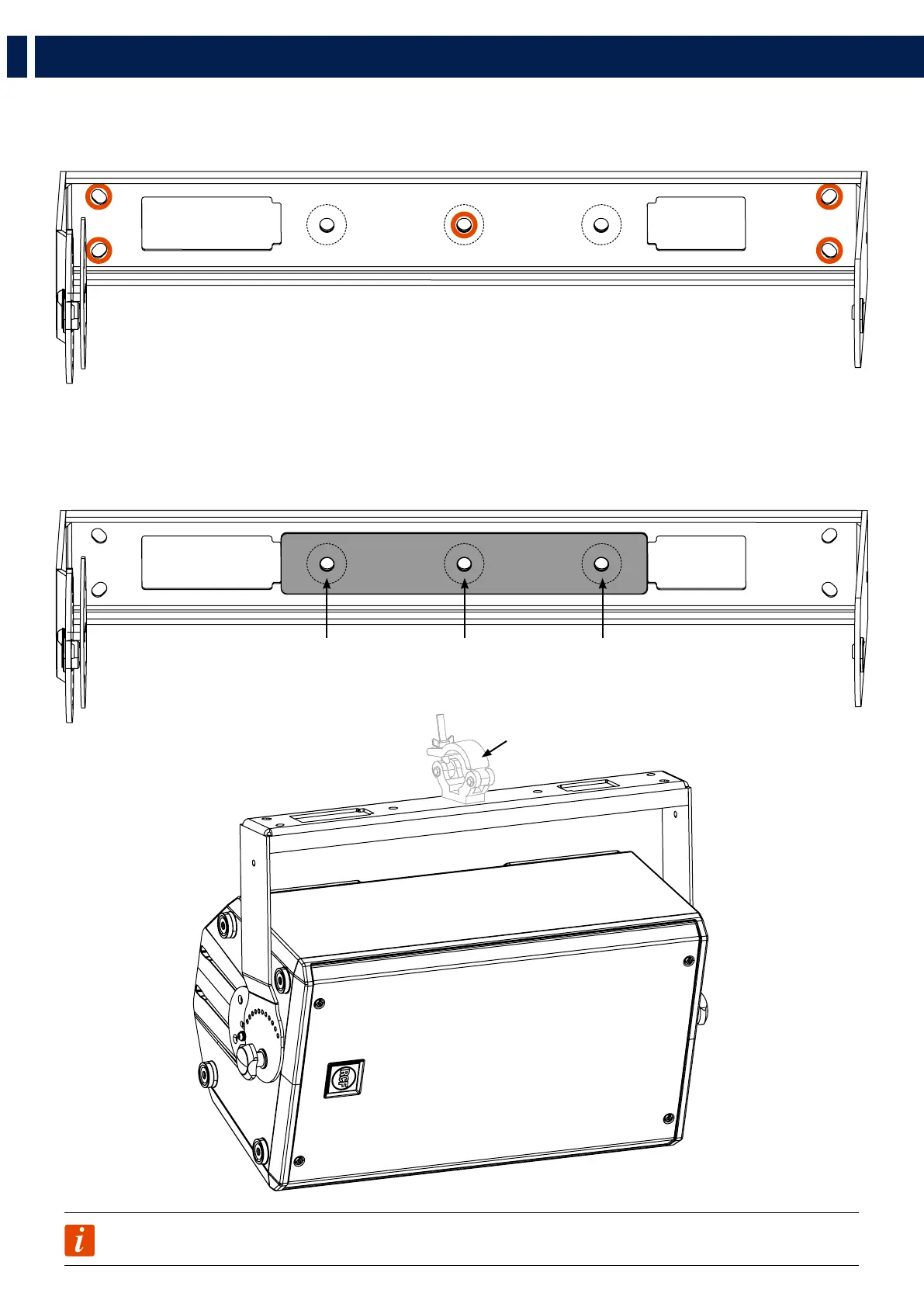 When hanging the system, add the reinforcement plate to the bracket and hang the system at least to the central hole or even to the other