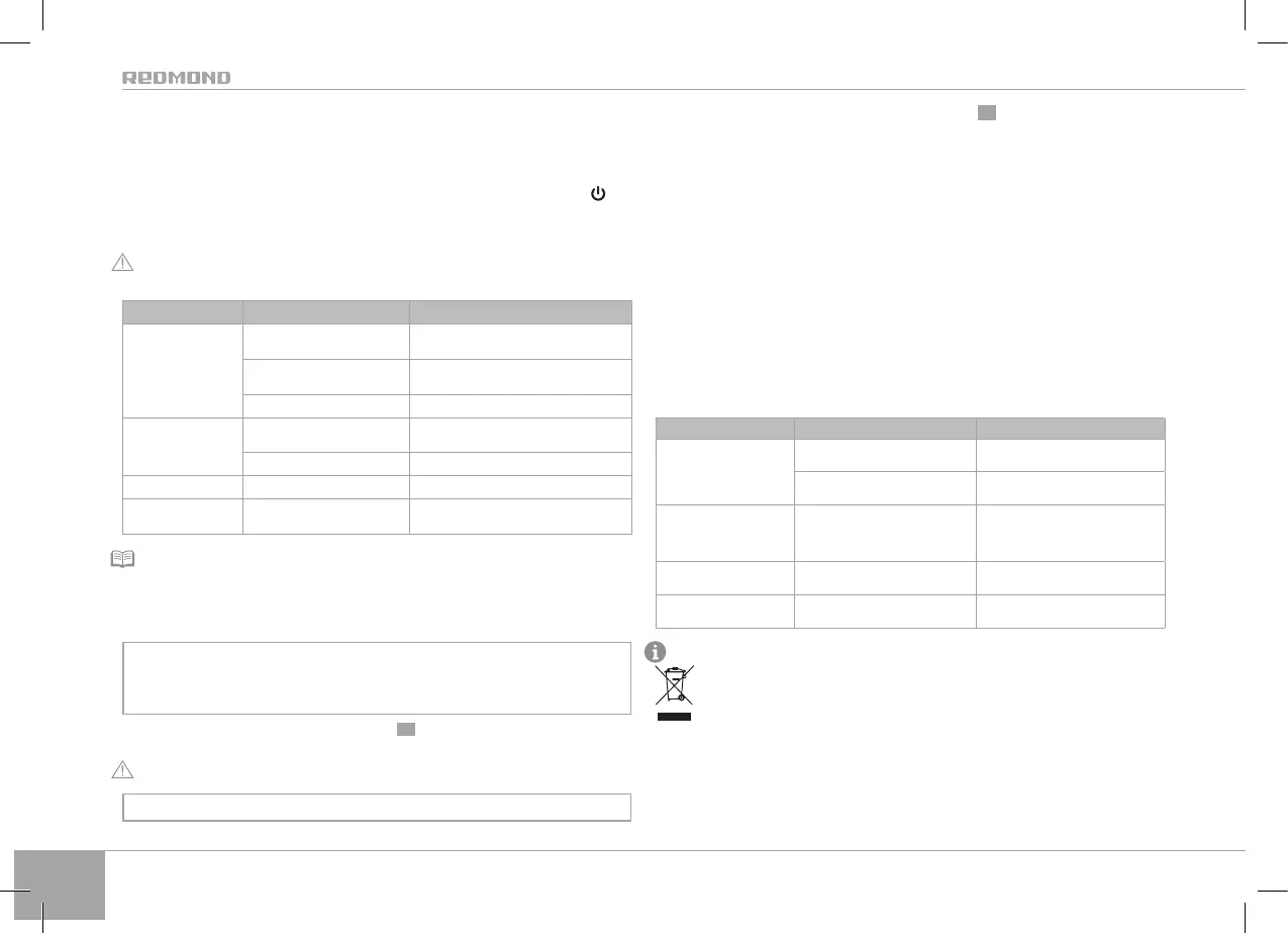 звуковых сигнала и автоматически отключится. Вы можете выключить прибор вручную, нажав кнопку . Акку-