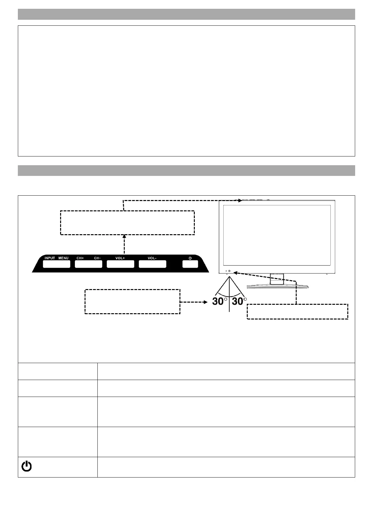 Der Empfangsradios vom Infrarot-Empfänger des Fernsehgerätes liegt bei ca. 60°.