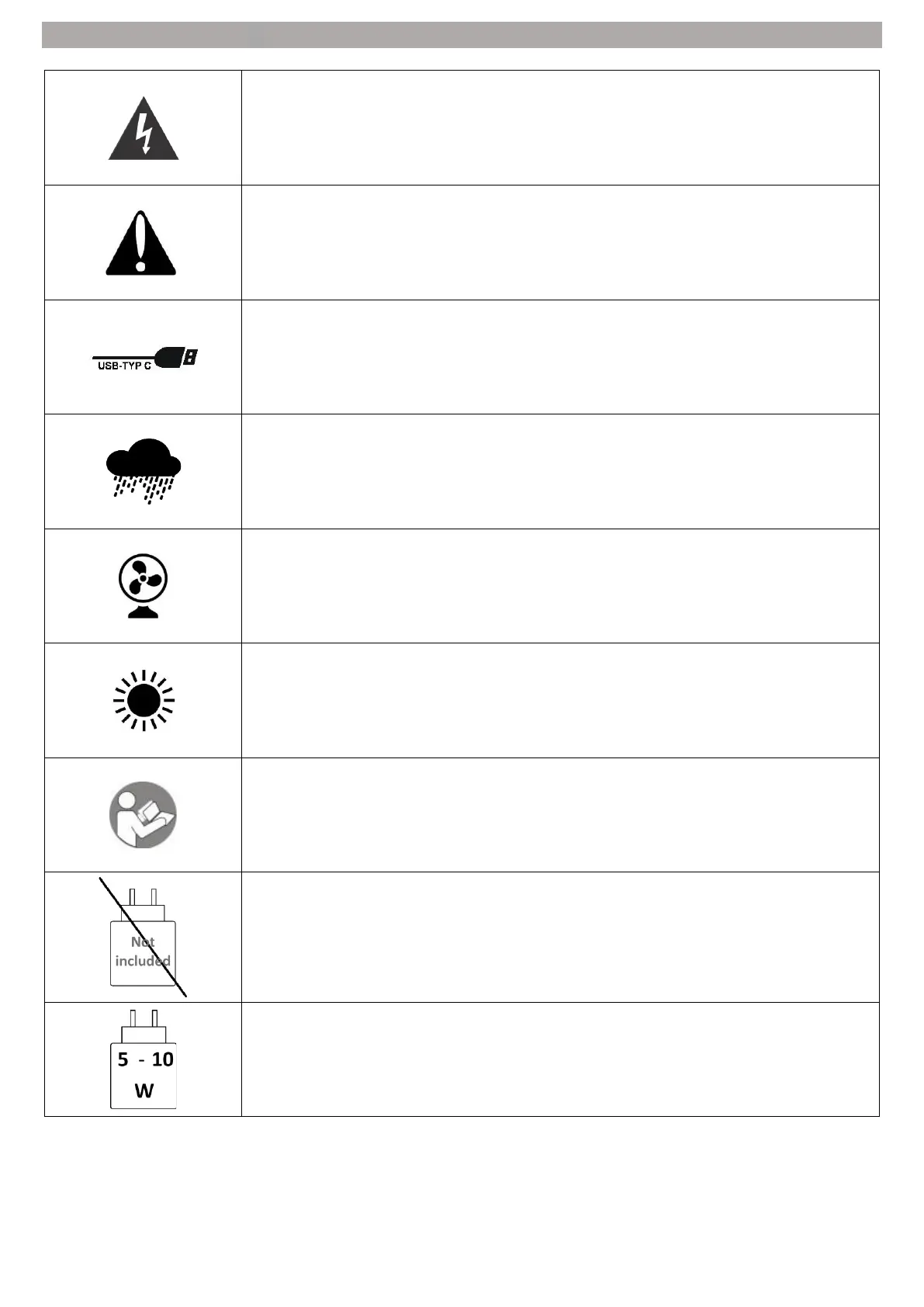 - Maximum power: 5V, 2A (10W)