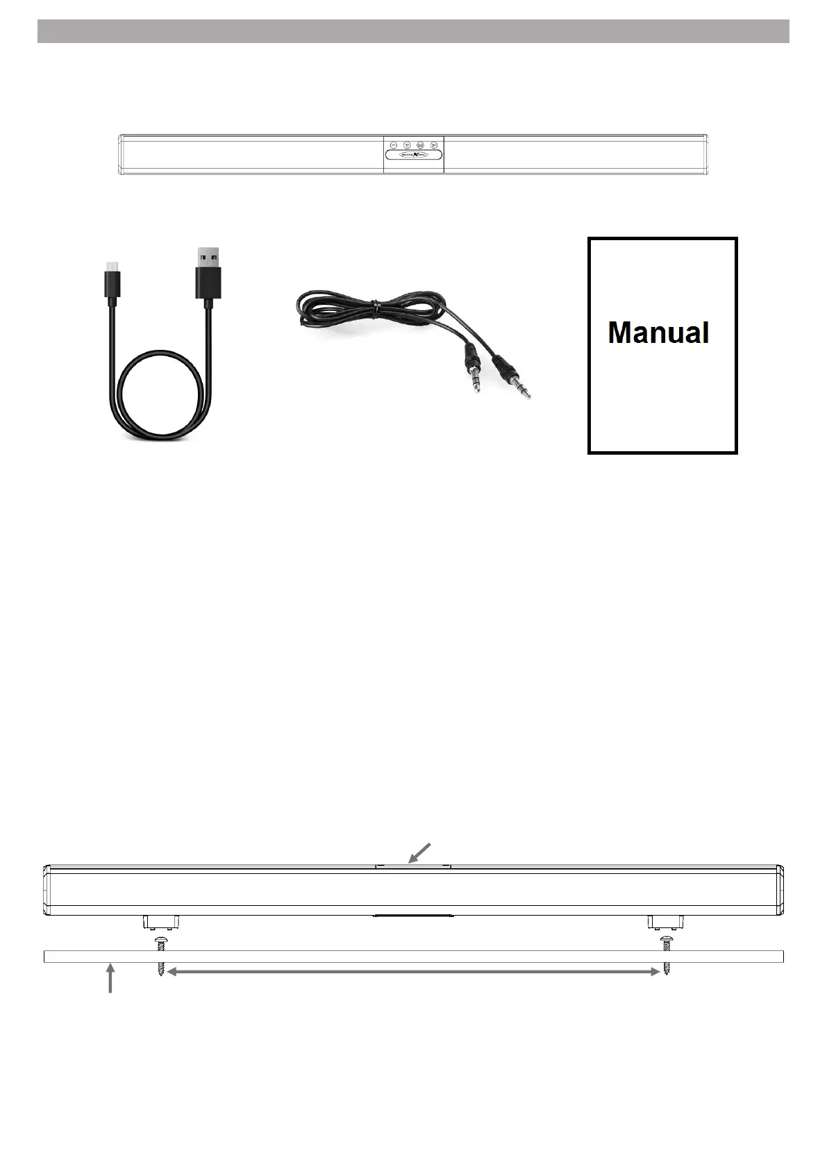 The sound bar can also be mounted on a wall if required. Required mounting material, screws and dowels are