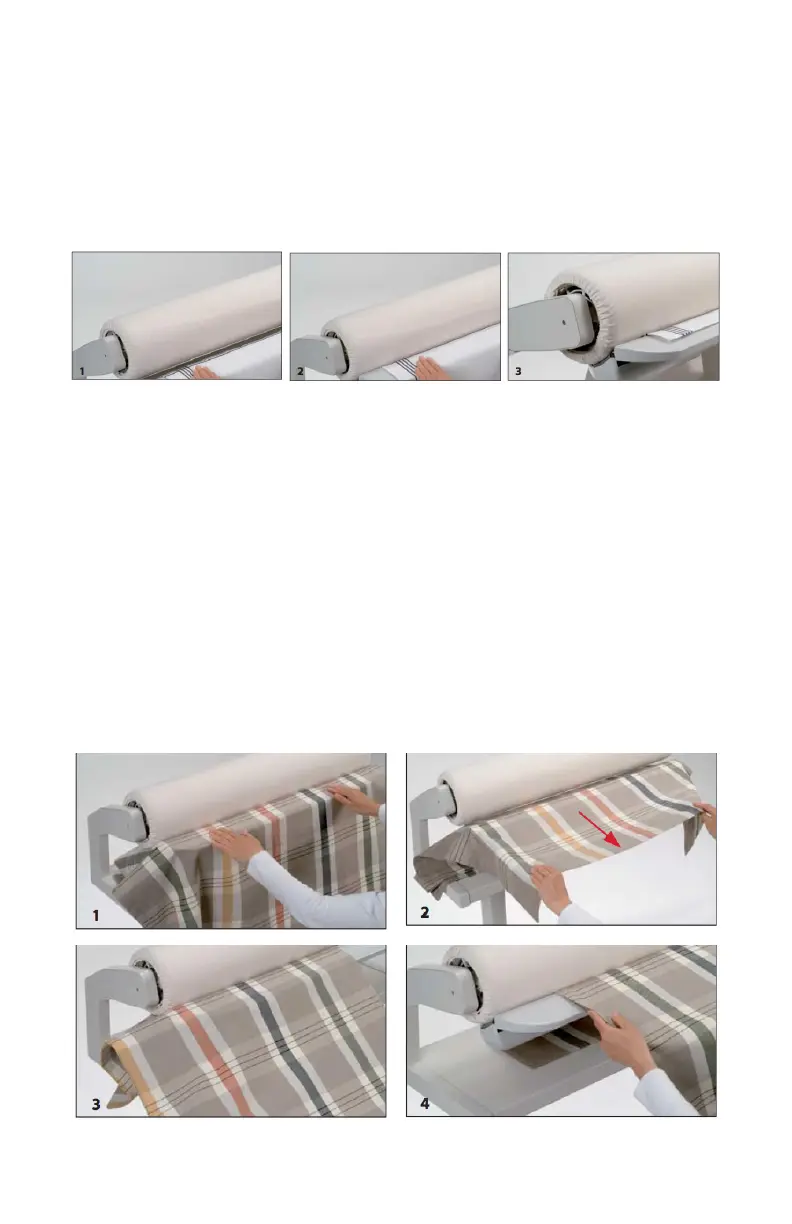 2. With the roller in the raised position, gently pull the fabric back towards you over the