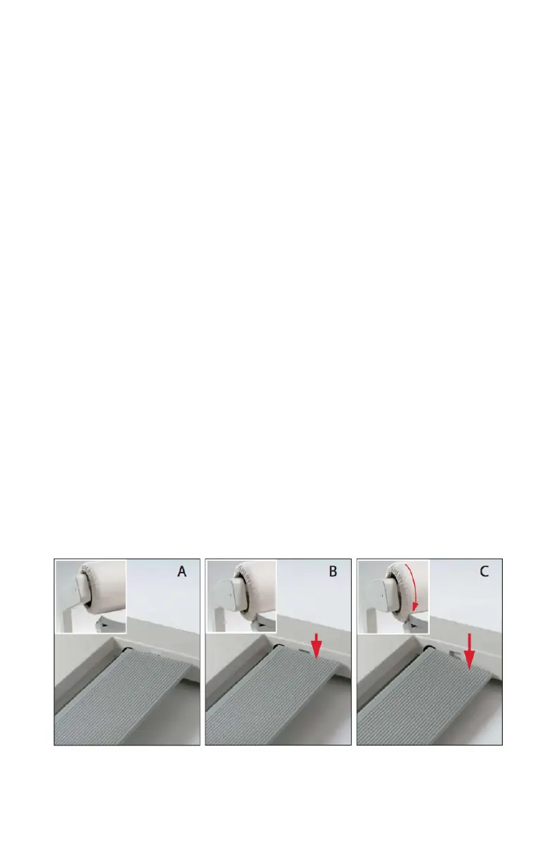 Posición A es la Posición de Inicio. El rodillo permanece en la posición levantada. El pedal
