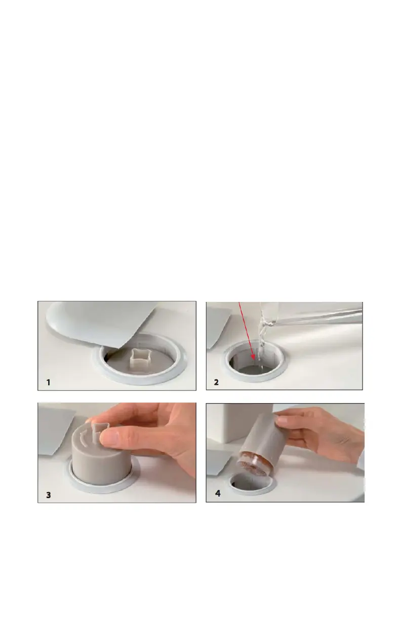 1. Jale hacia arriba la tapa de la apertura de llenado. El cartucho eliminador de cal está