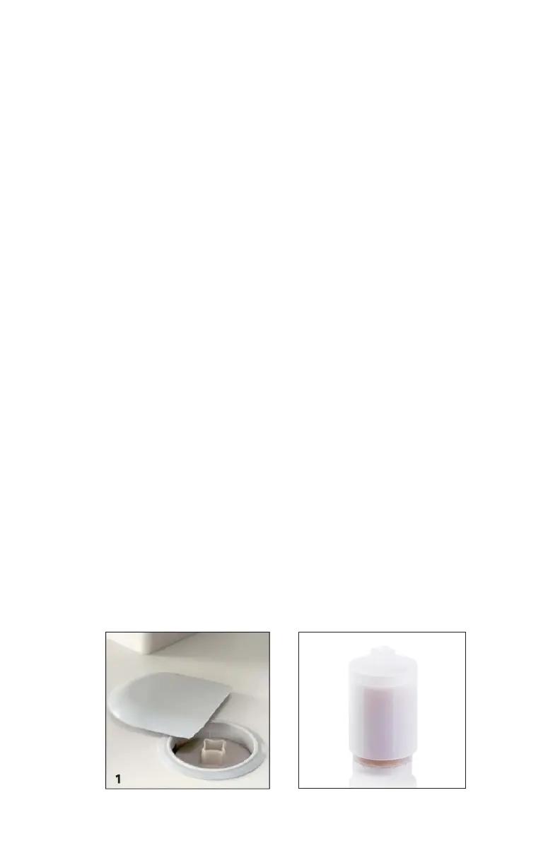 insertado en el tanque de agua. El cartucho está colocado debajo de la tapa del llenador.