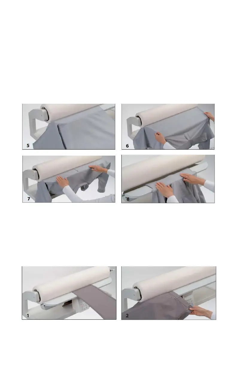 miento. Asegúrese que el cierre esté cara arriba hacia el rodillo de planchado. Planche