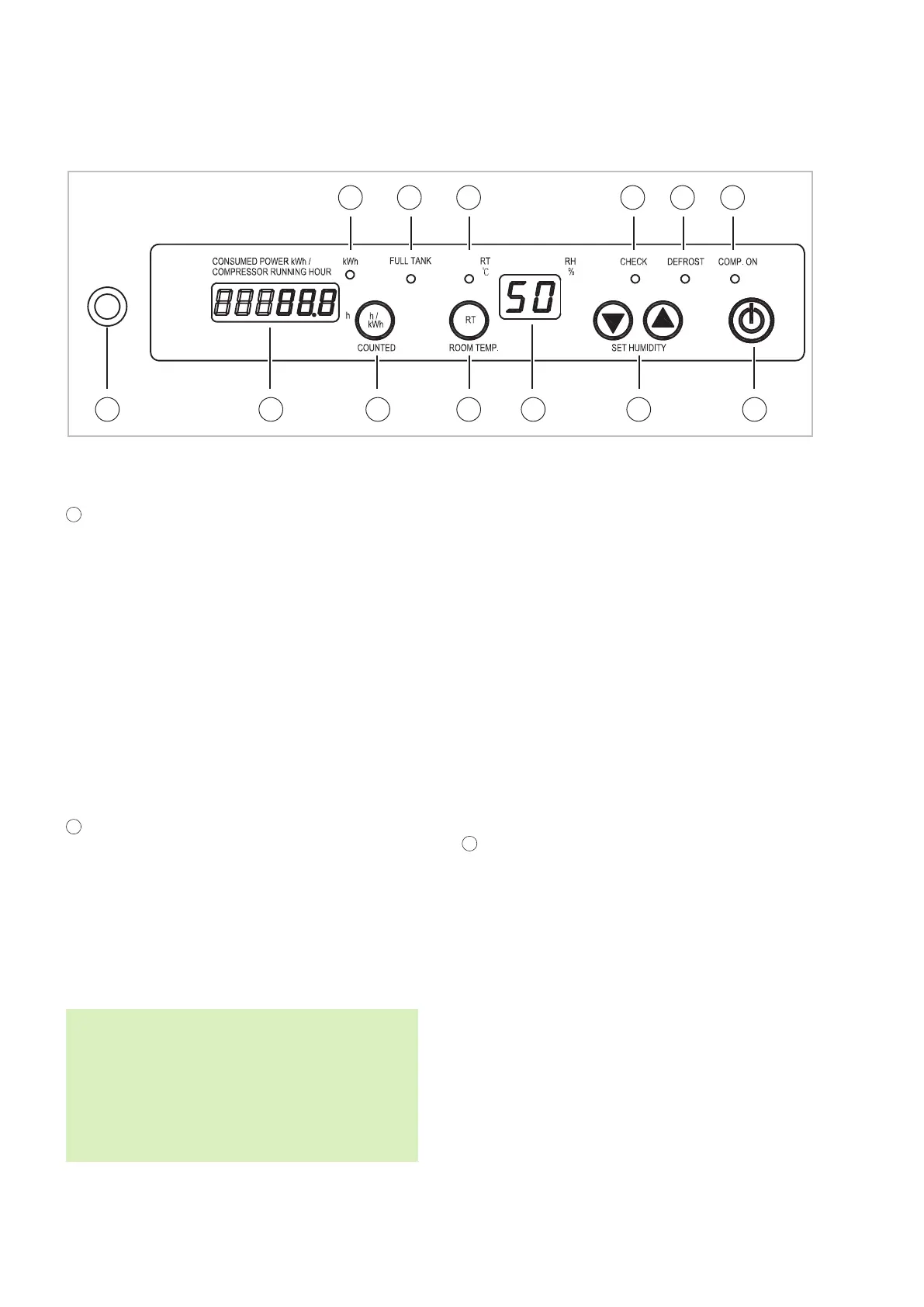 humidity in the room, then the "COMP. ON" indi-