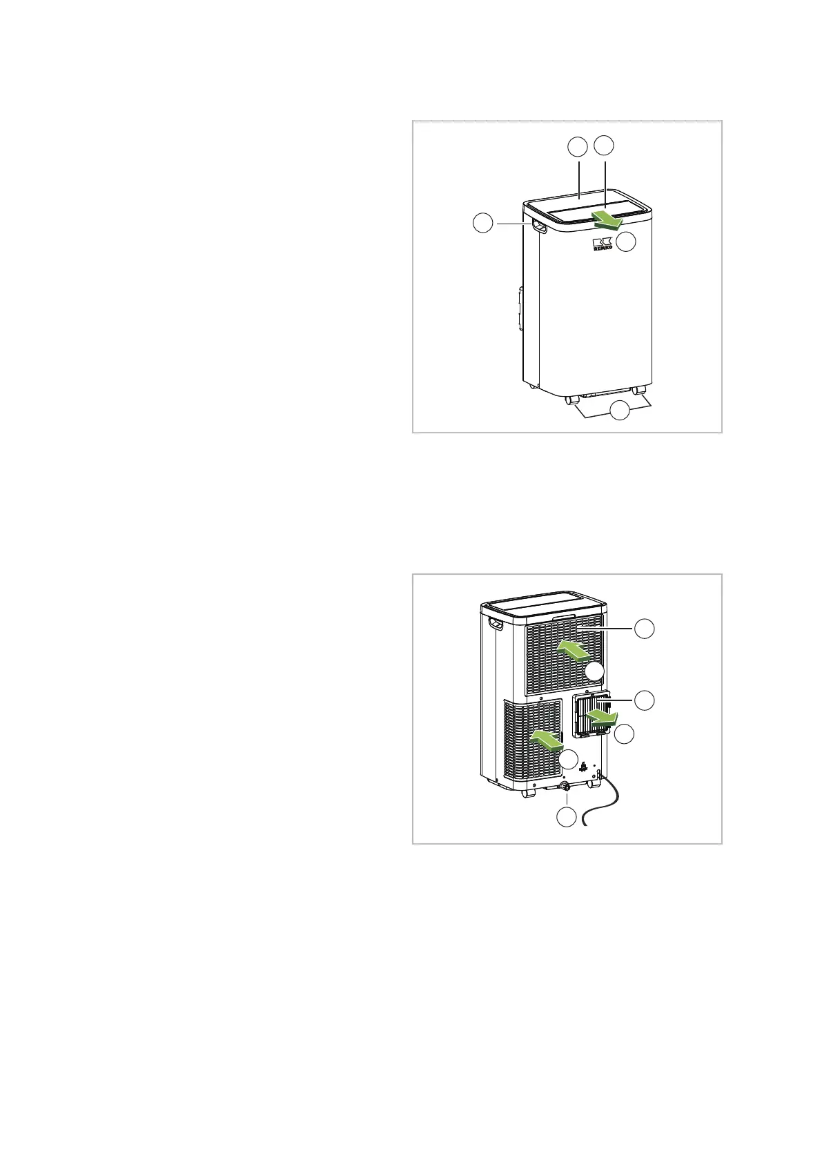 B: Air inlet, recirculation