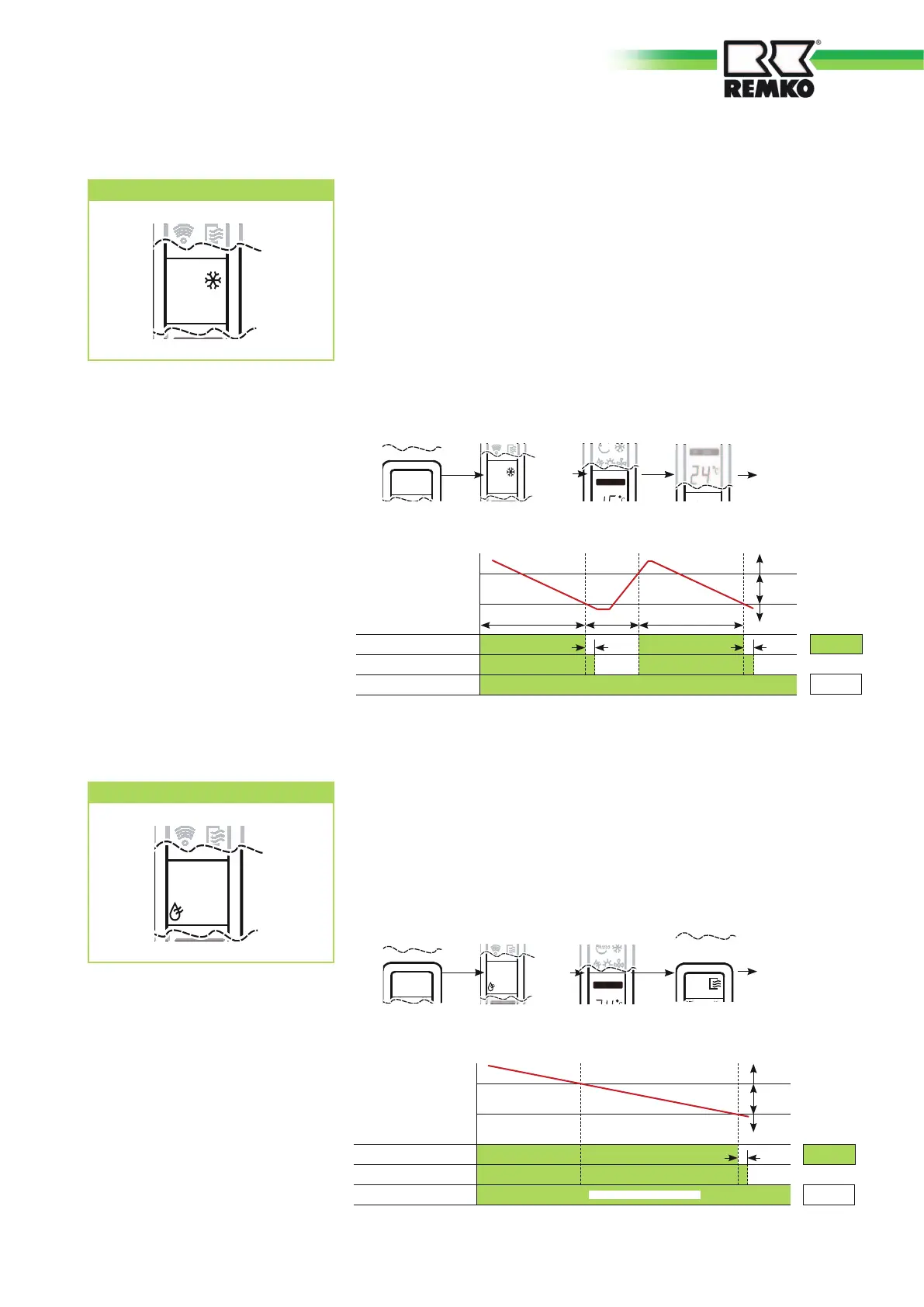 Als de ruimtetemperatuur ca. 2 °C lager wordt dan de insteltemperatuur,