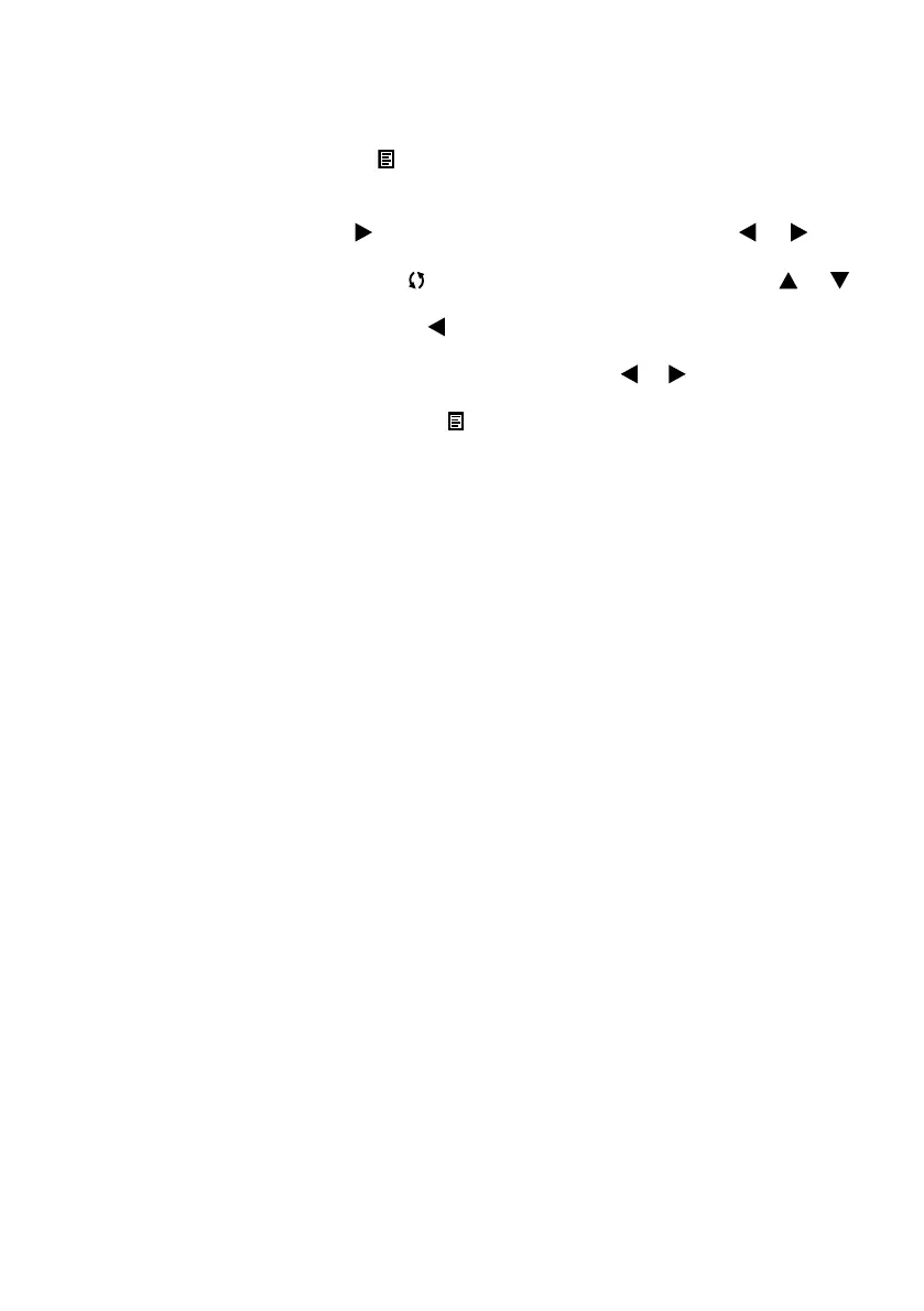 5. Congure the desired settings for the selected menu item. To do this, use the and arrow keys on the control