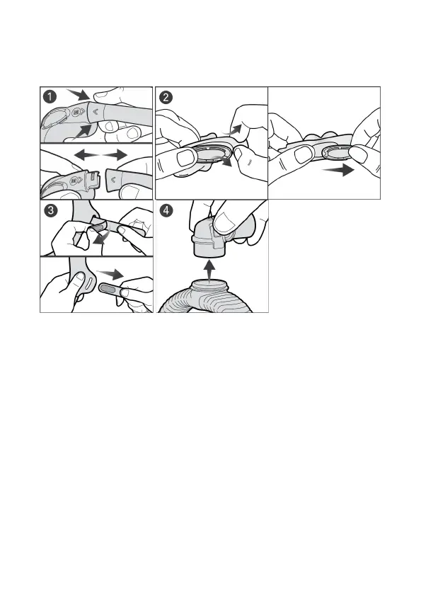 4. Na kolínku stiskněte boční tlačítka a kolínko odpojte od rámu masky.