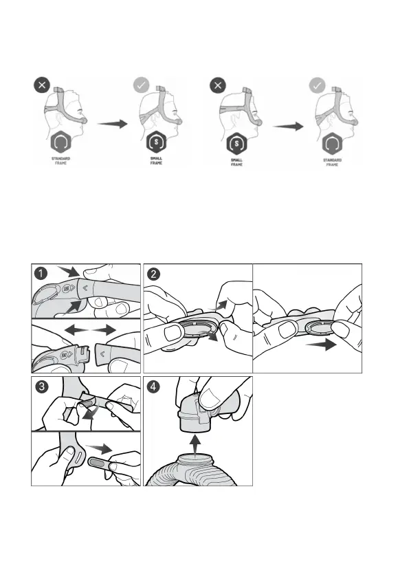 hoofd of te dicht bij uw ogen zit, probeer dan de standaard framemaat.