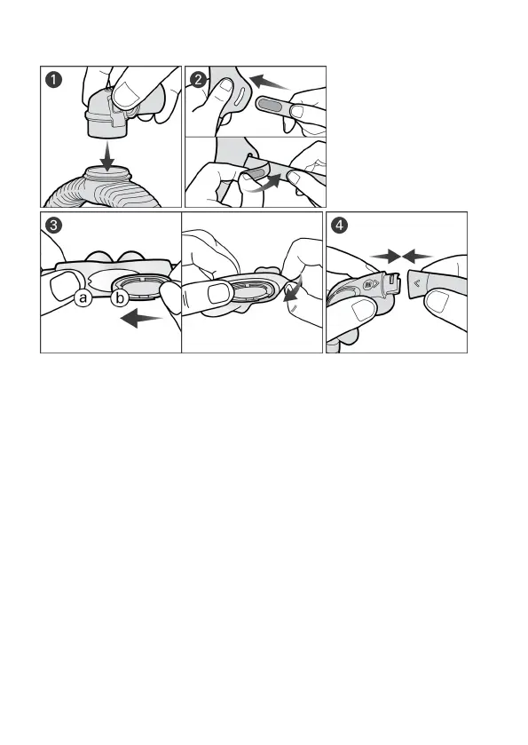 3. Lijn het klittenband (a) op het kussentje uit met de inkeping (b) op het