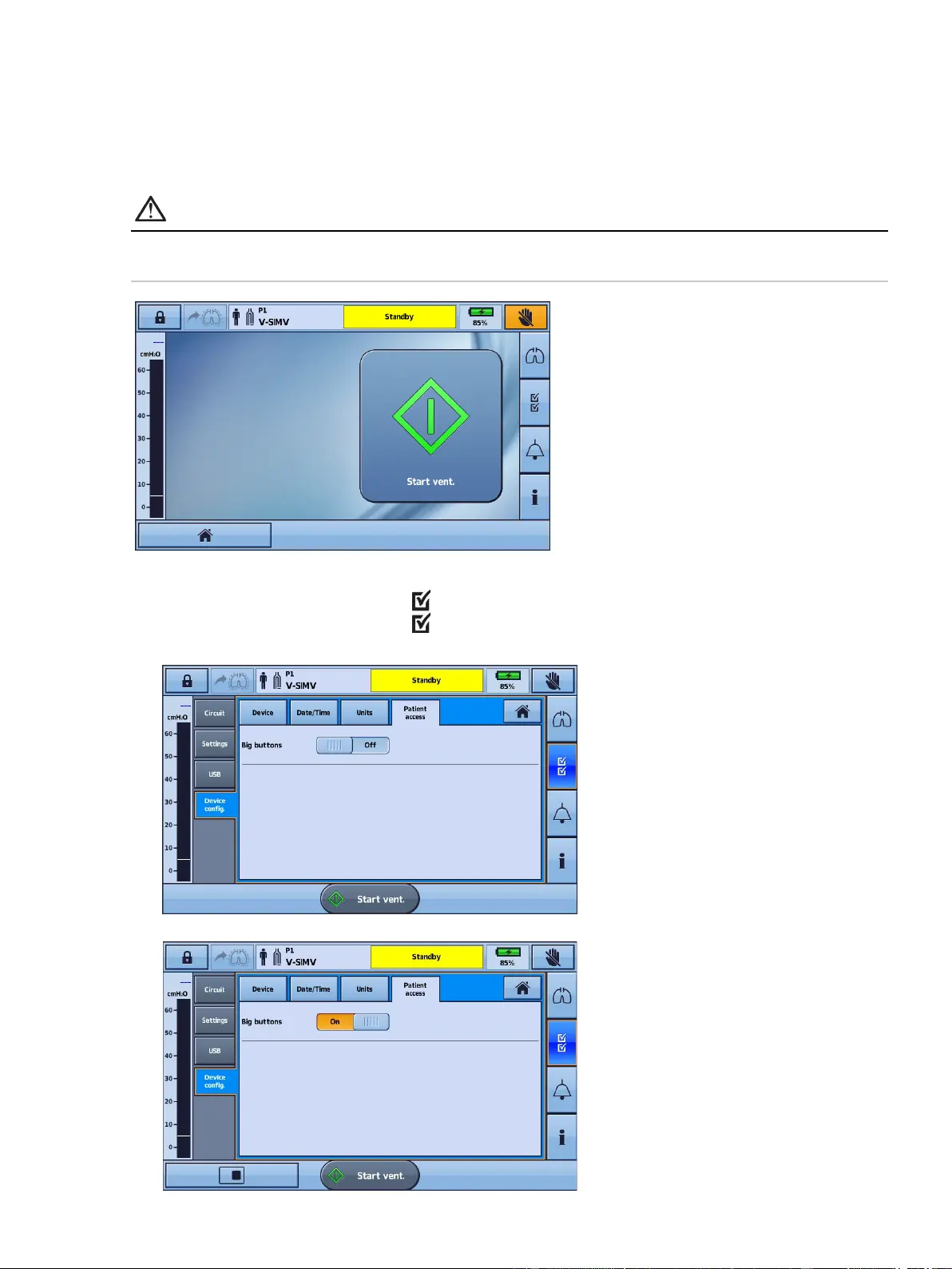 usability and accessibility. The 'Big buttons' mode can be used to start and stop ventilation, as well as to
