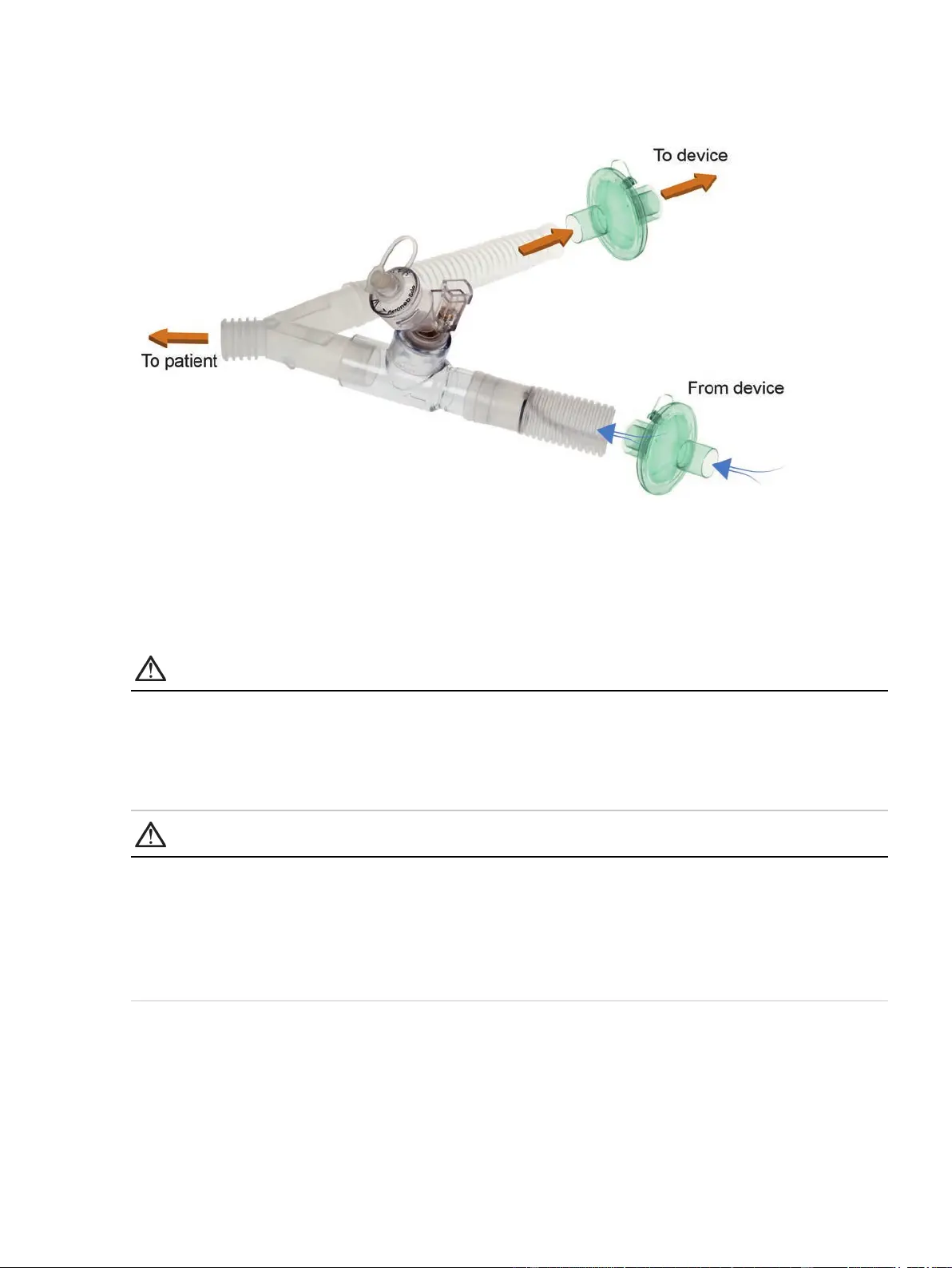 Connect the nebuliser unit with a T-piece into the inspiratory limb of the breathing circuit before the