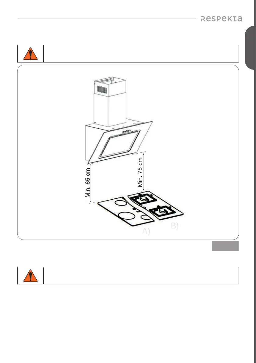 ACHTUNG: Die motorbetriebene Dunstabzugshaube muss mindestens 65 cm vom