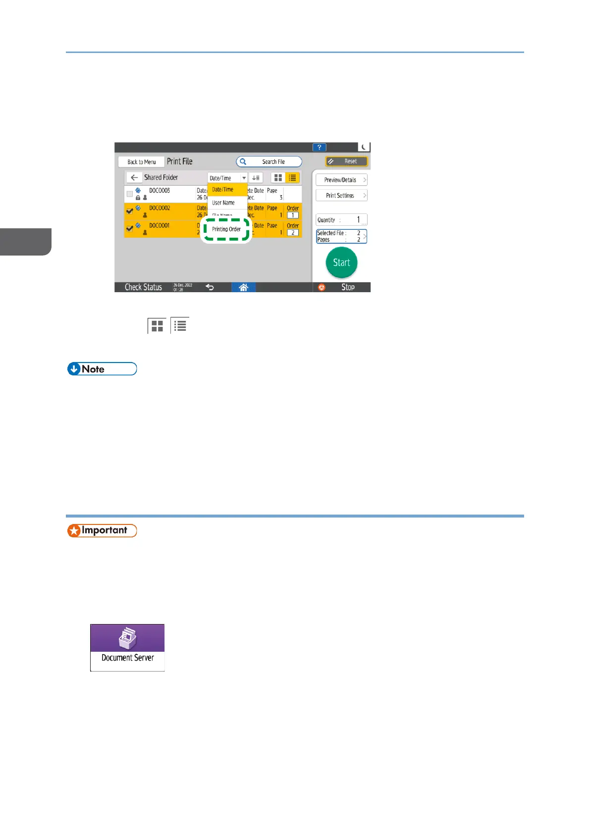 • To stop printing, press the [Stop], and then press [Cancel Printing].