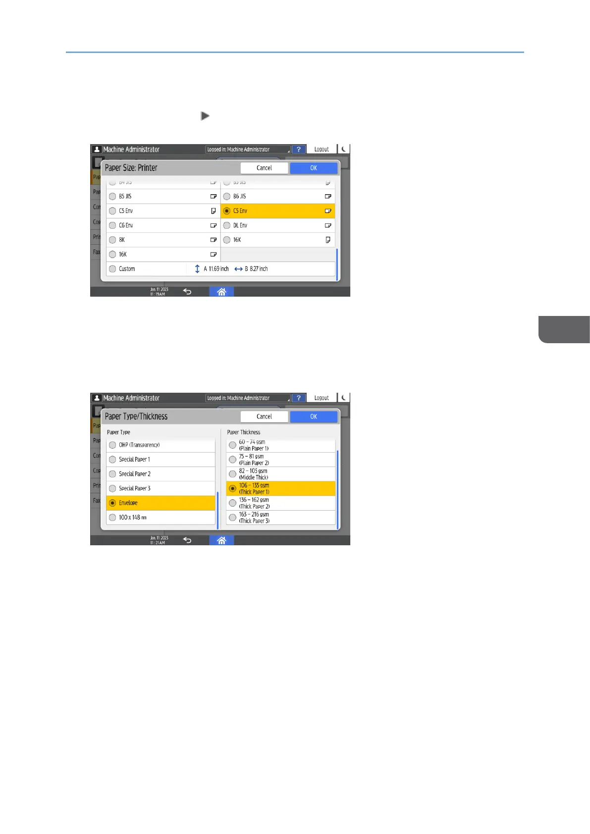 Also, select the thickness of the loaded envelopes from "Paper Thickness".