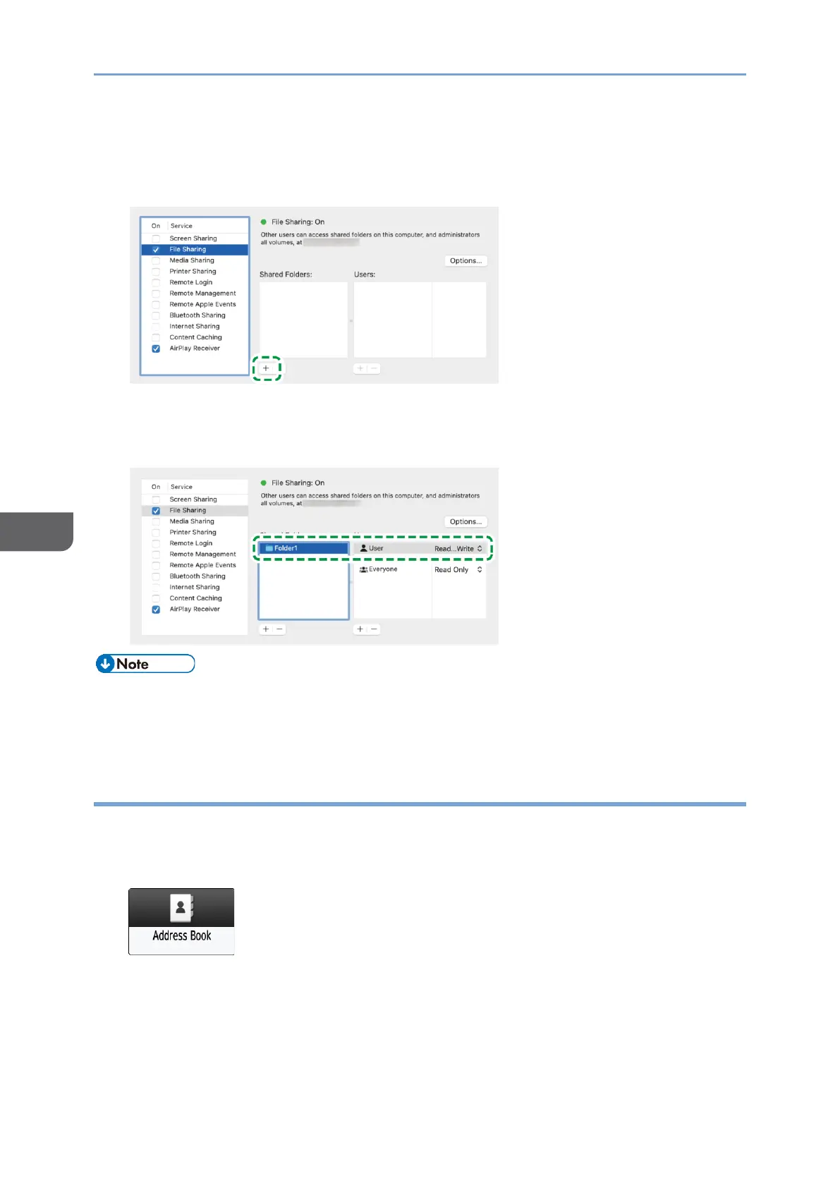 5. Click [+] below [Shared Folders] on the [Sharing] screen.
