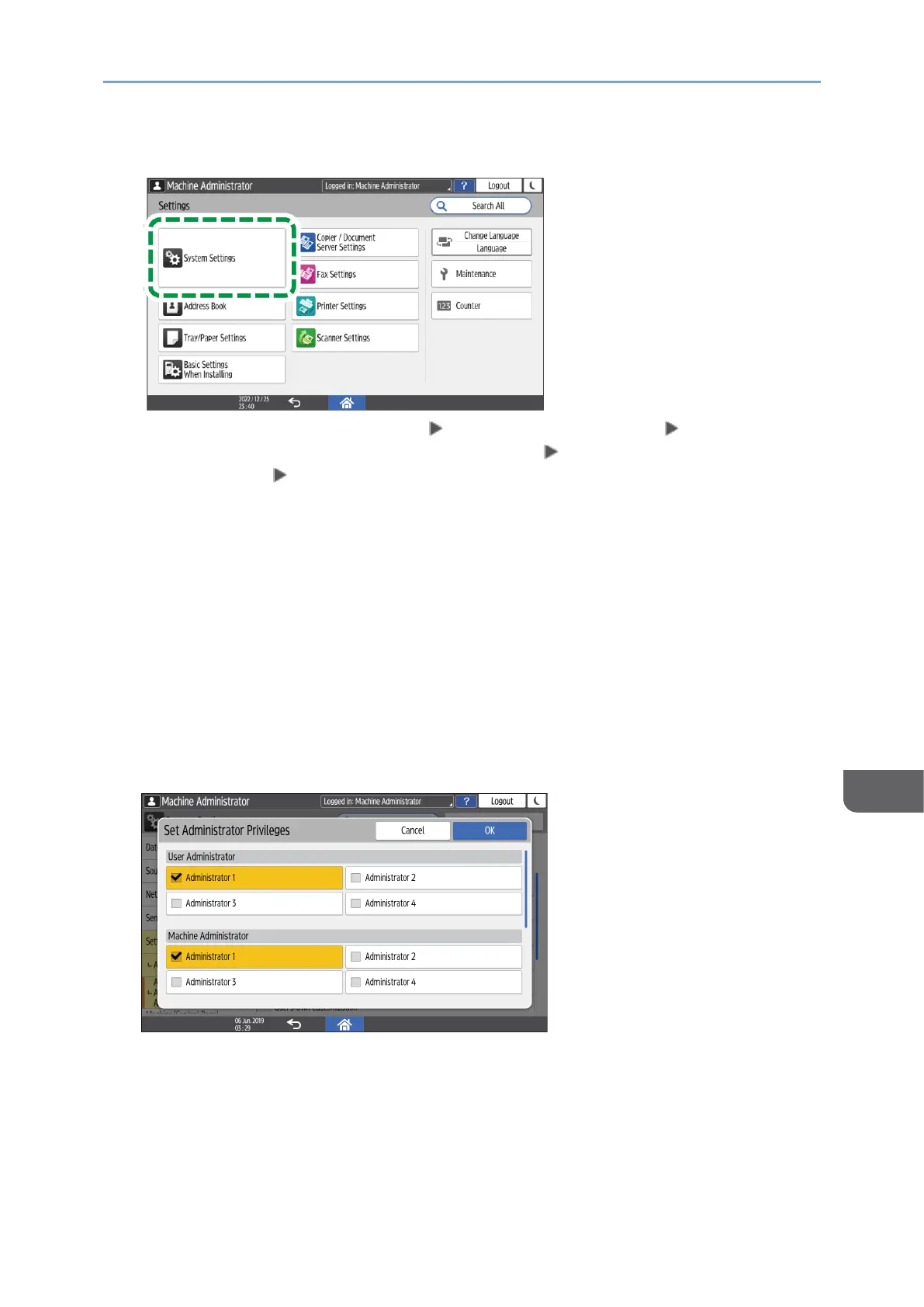 • Assign the privileges of User Administrator, Machine Administrator, Network