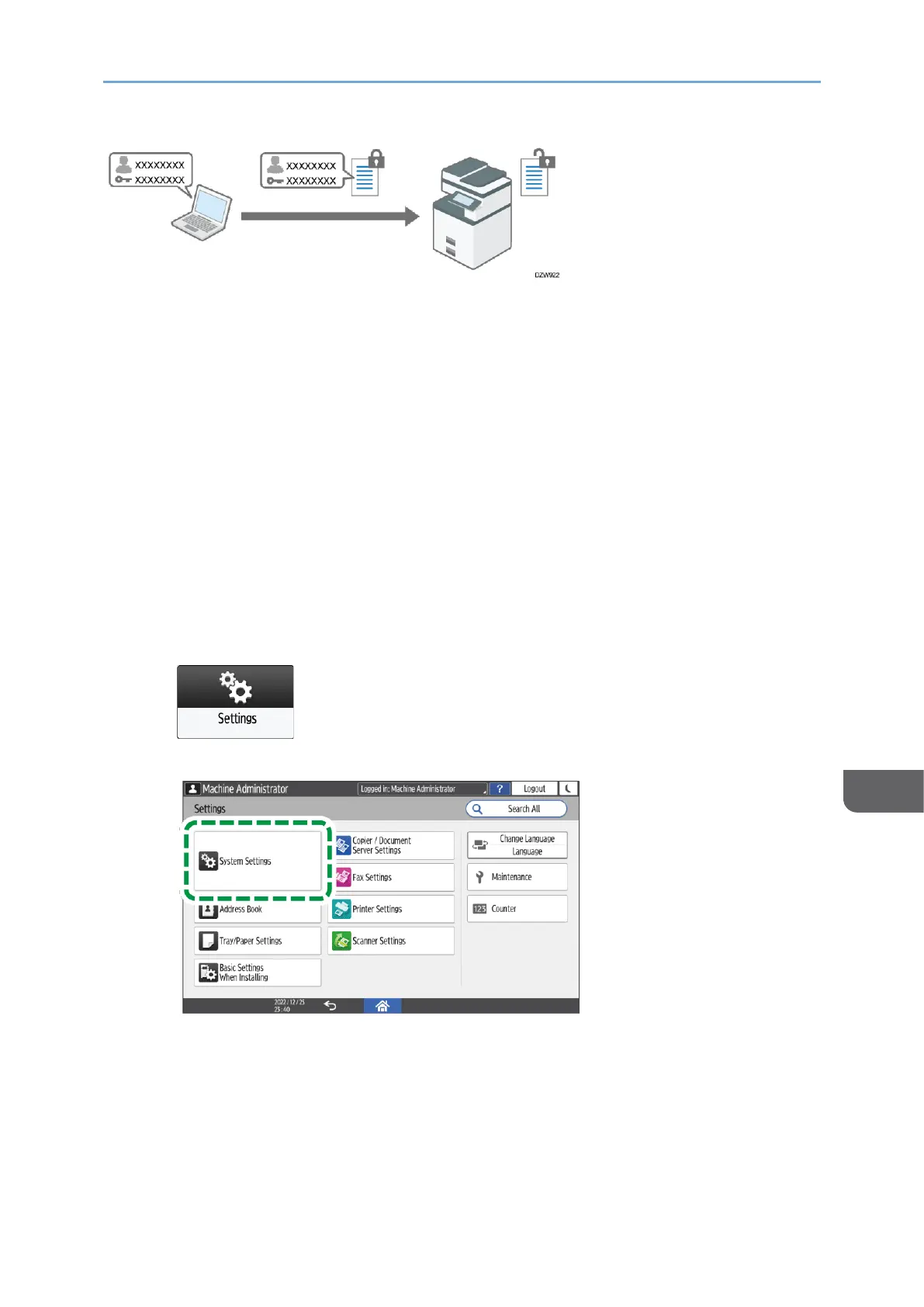 page 260 "Logging in to the Machine as a Custom-Privileges Administrator"