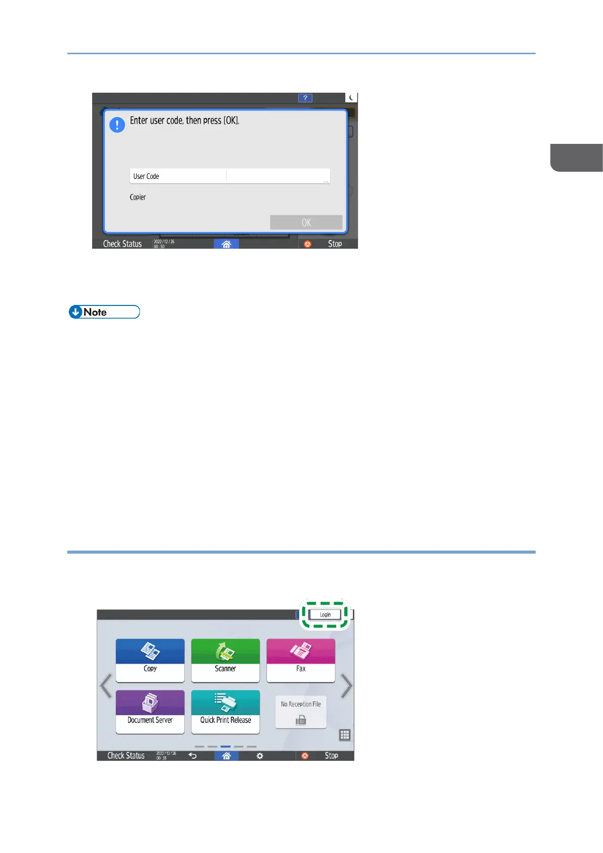 Logout can be changed by [Auto Logout Timer] of [System Settings] or the Auto