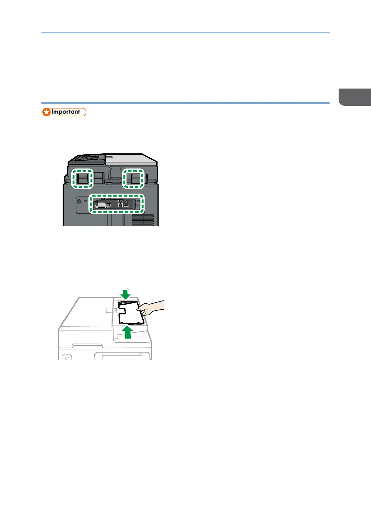 • Do not touch the parts shown below while scanning originals by using the ADF. If