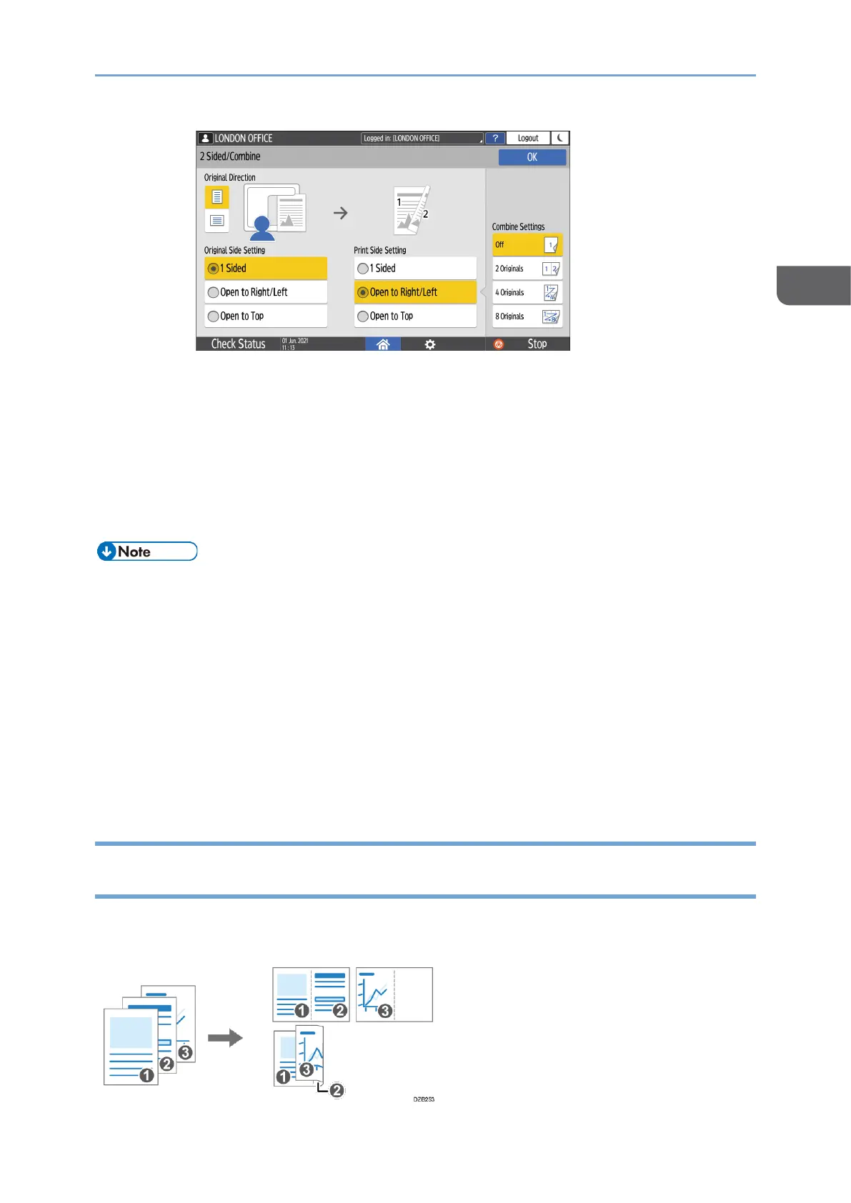Combining and Copying a Multi-page Original onto a Single Sheet of