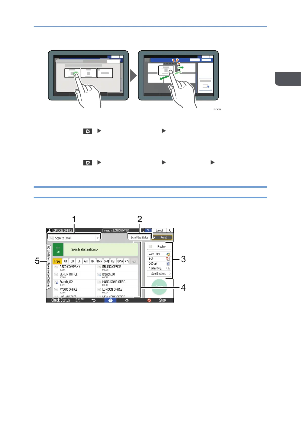 You can switch between [Scan to Email] and [Scan to Folder]. The items displayed in