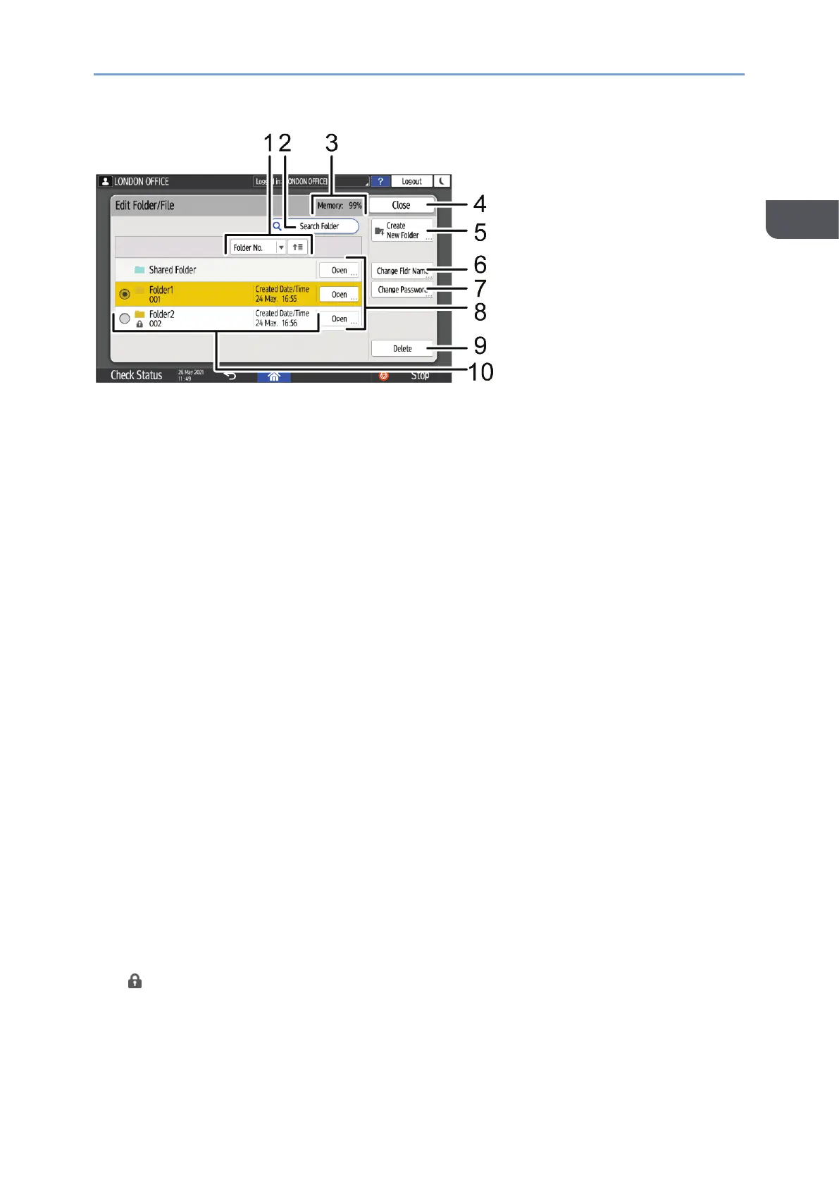 Press to sort the folders by [Folder No.], [Folder Name], or [Date/Time].