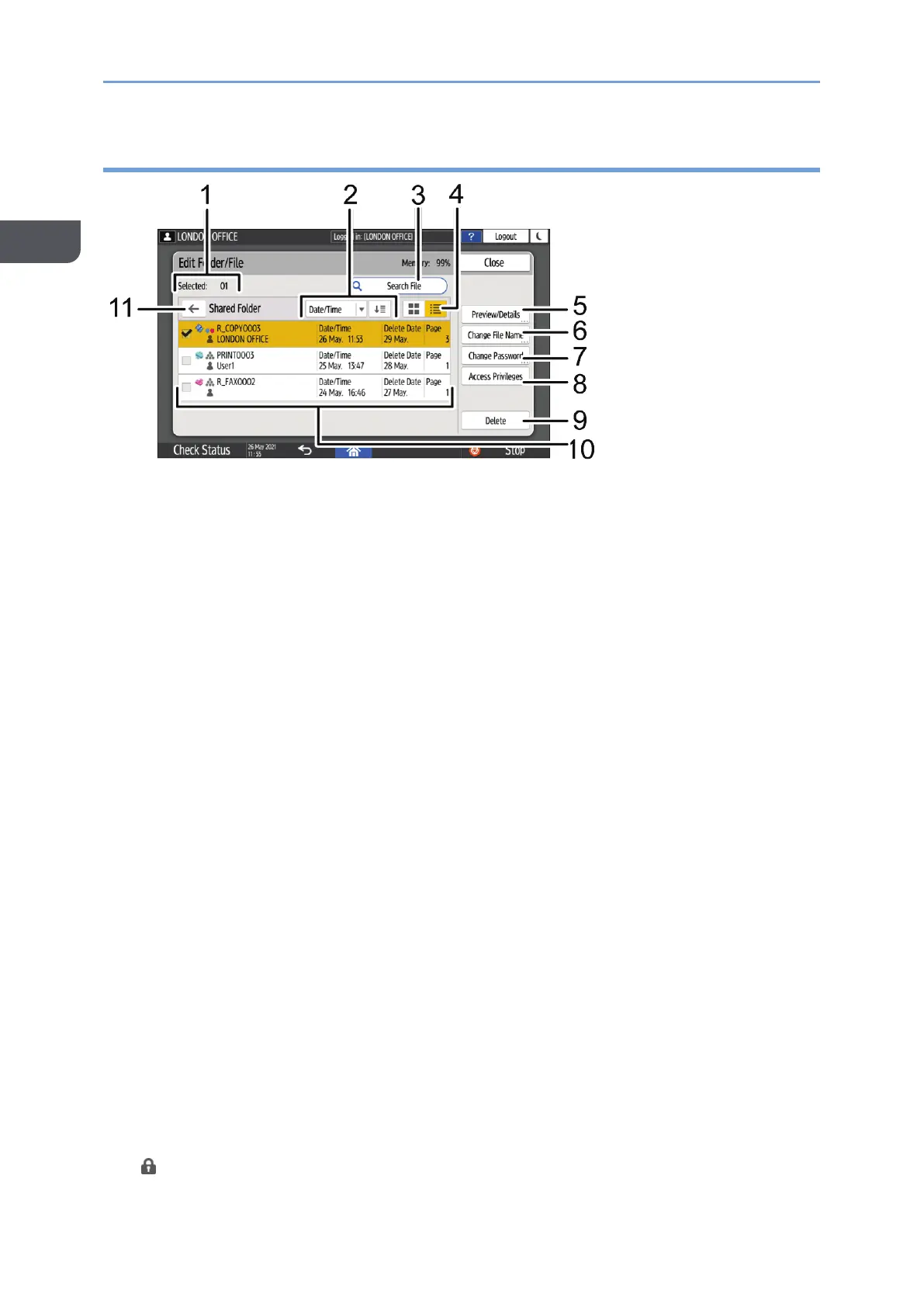Press to set or change the access privilege for the document. Depending on the user
