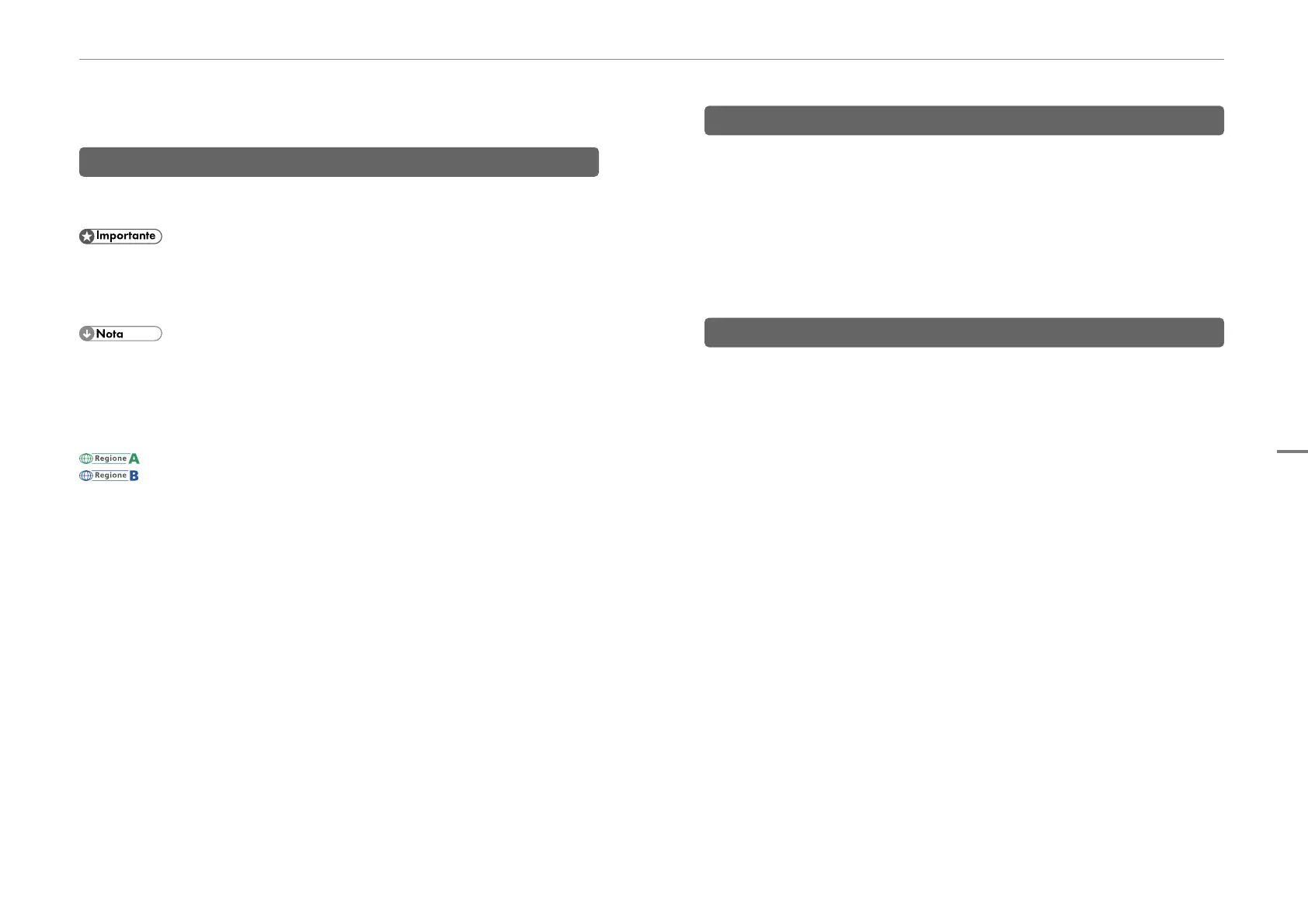 Le differenze tra le funzioni dei modelli destinati alla regione A e alla regione B sono indicate