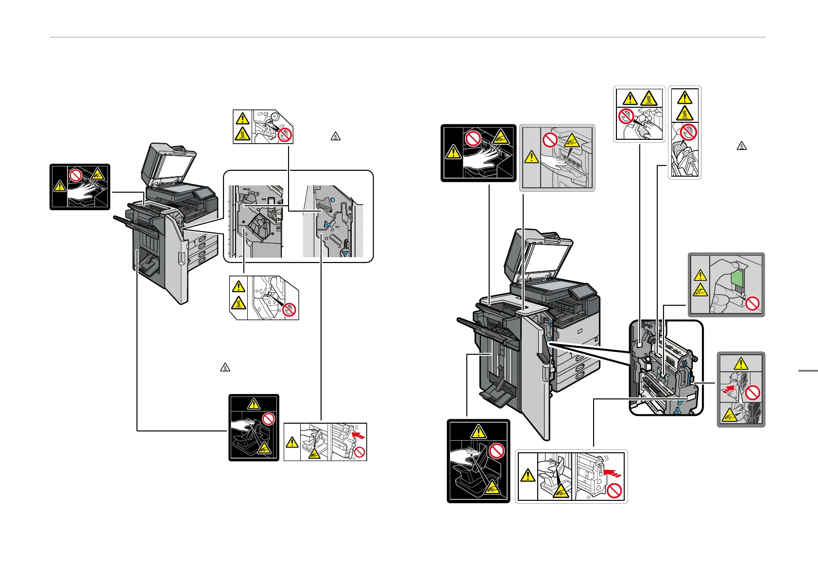 Mantenha as mãos afastadas da bandeja do finalizador de folhetos