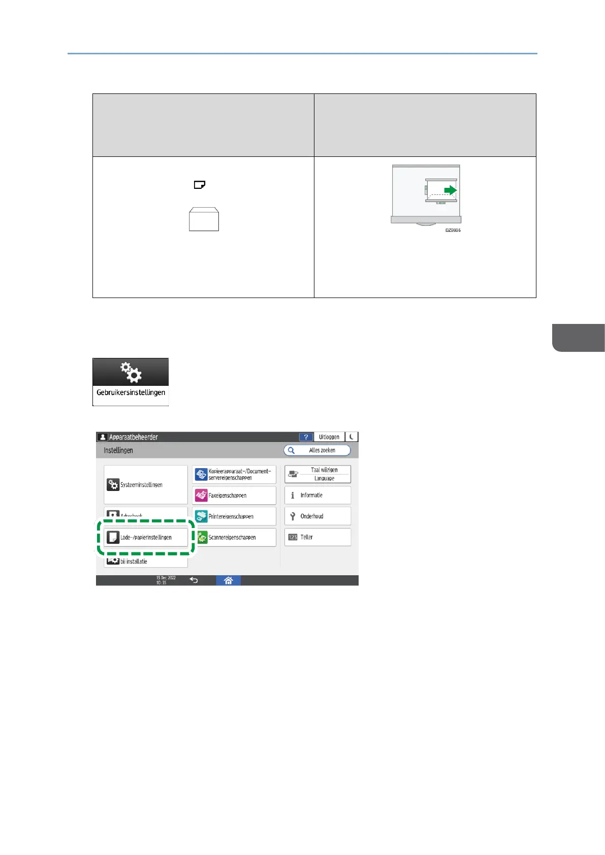 3. Druk op het scherm Instellingen op [Lade-/papierinstellingen].
