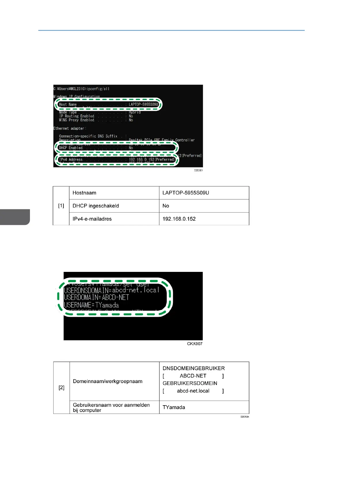 6. Controleer de domeinnaam, werkgroepnaam en log-in gebruikersnaam en noteer