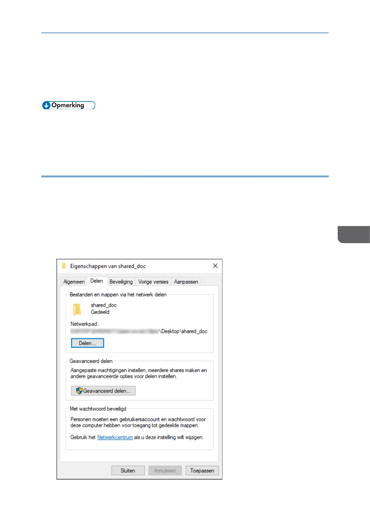 De vereiste informatie op de computer is bevestigd. Maak nu een gedeelde map op