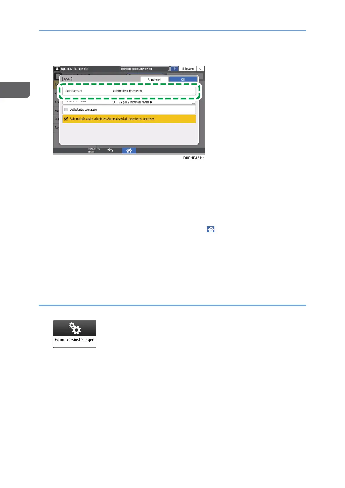 Papier met afwijkende afmetingen instellen via het bedieningspaneel