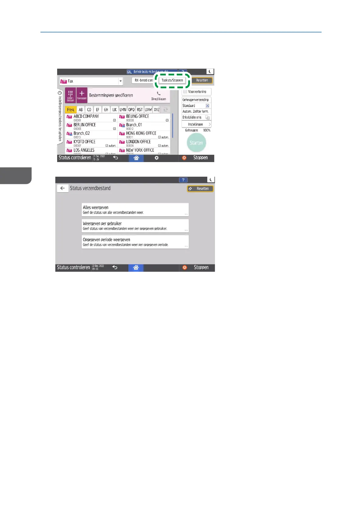 3. Druk op [Verzendresultaat] en selecteer het verzendresultaat dat u wilt bekijken.