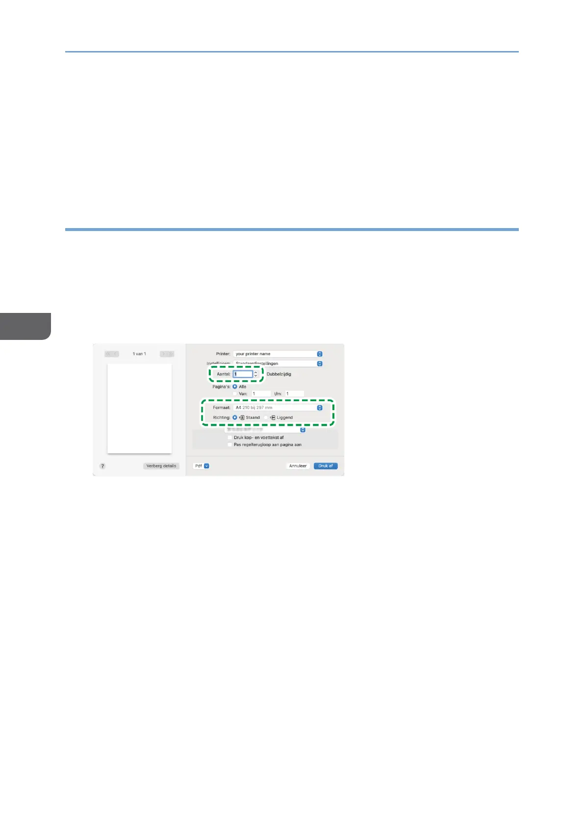 • Afdrukrichting: Geef hier de afdrukrichting van het document op. Selecteer